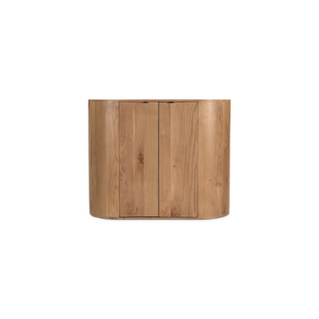 Full of natural appeal in solid oak, the Theo cabinet features a curved, minimalist design...