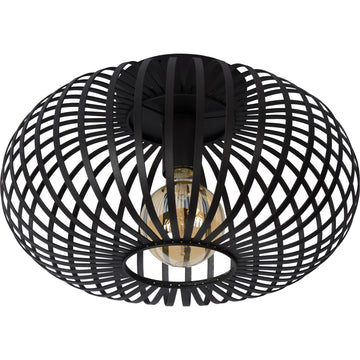 Plafonnier - Fer - Texturé - Finition enduite de poudre noire - Câblé - Max....