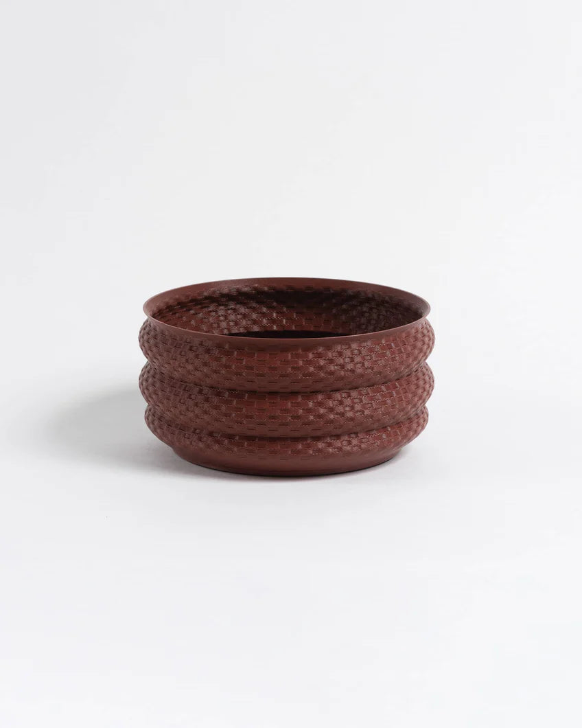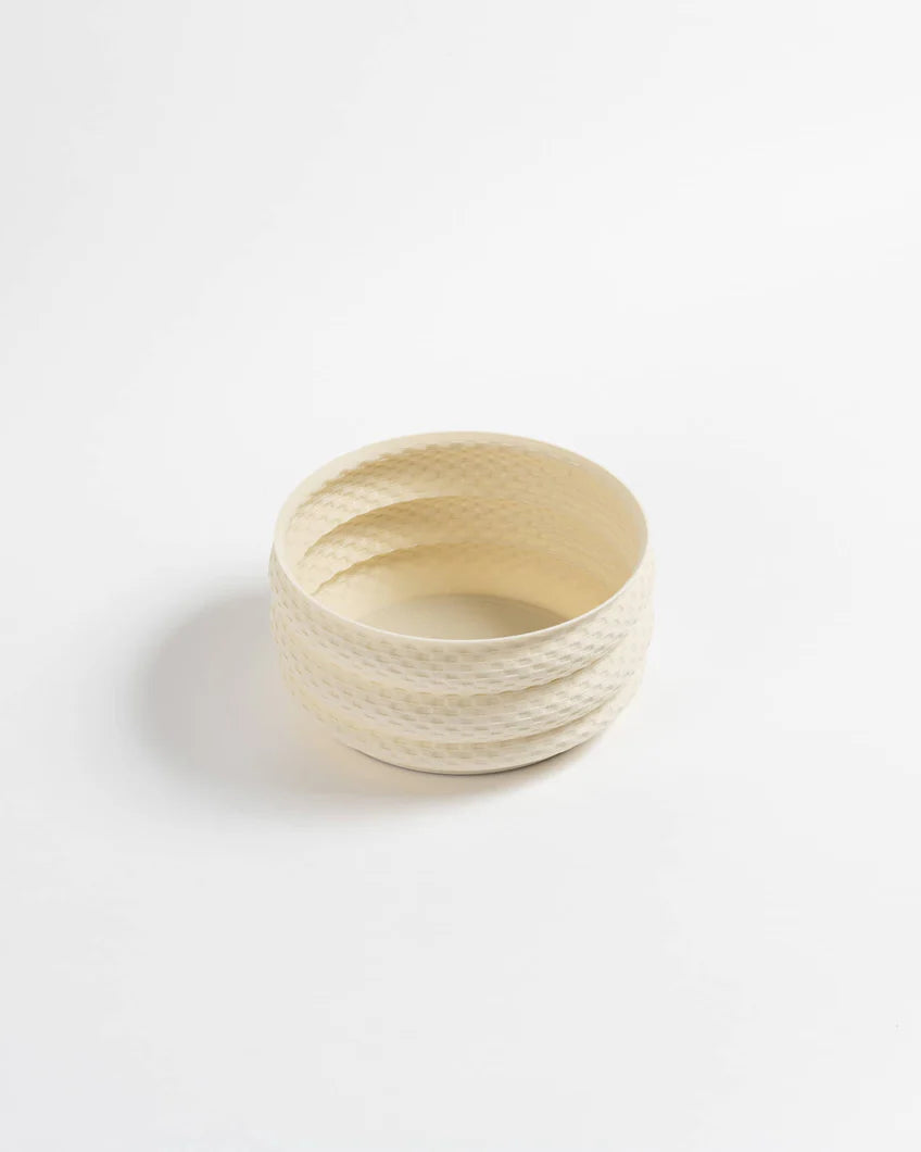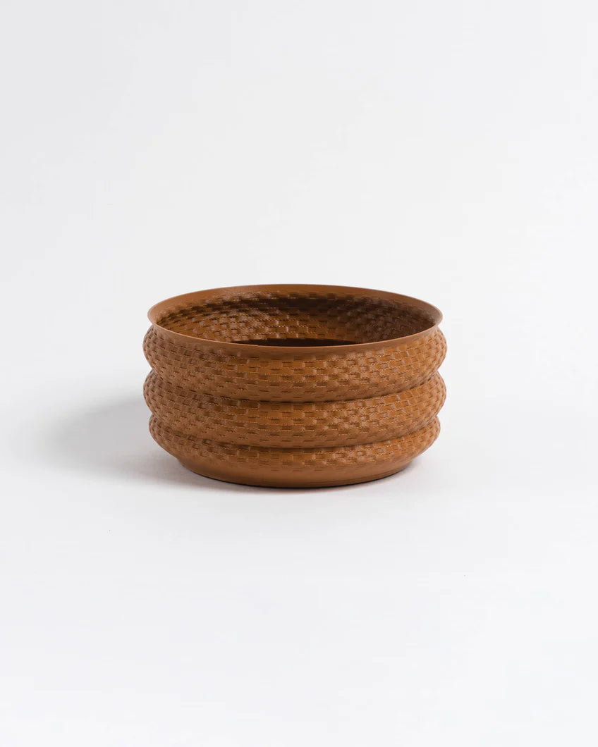 Le pot Bamboo est parfait pour les plantes d'intérieur avec un système racinaire peu profond ou un groupe de plantes succulentes. Il ne comporte pas de trou de drainage – arrosez en conséquence. Un mouvement de tissage lors de l'impression crée une texture complexe sur cette forme moderne et organique. Cette pièce met en valeur l’artisanat de la fabrication additive.