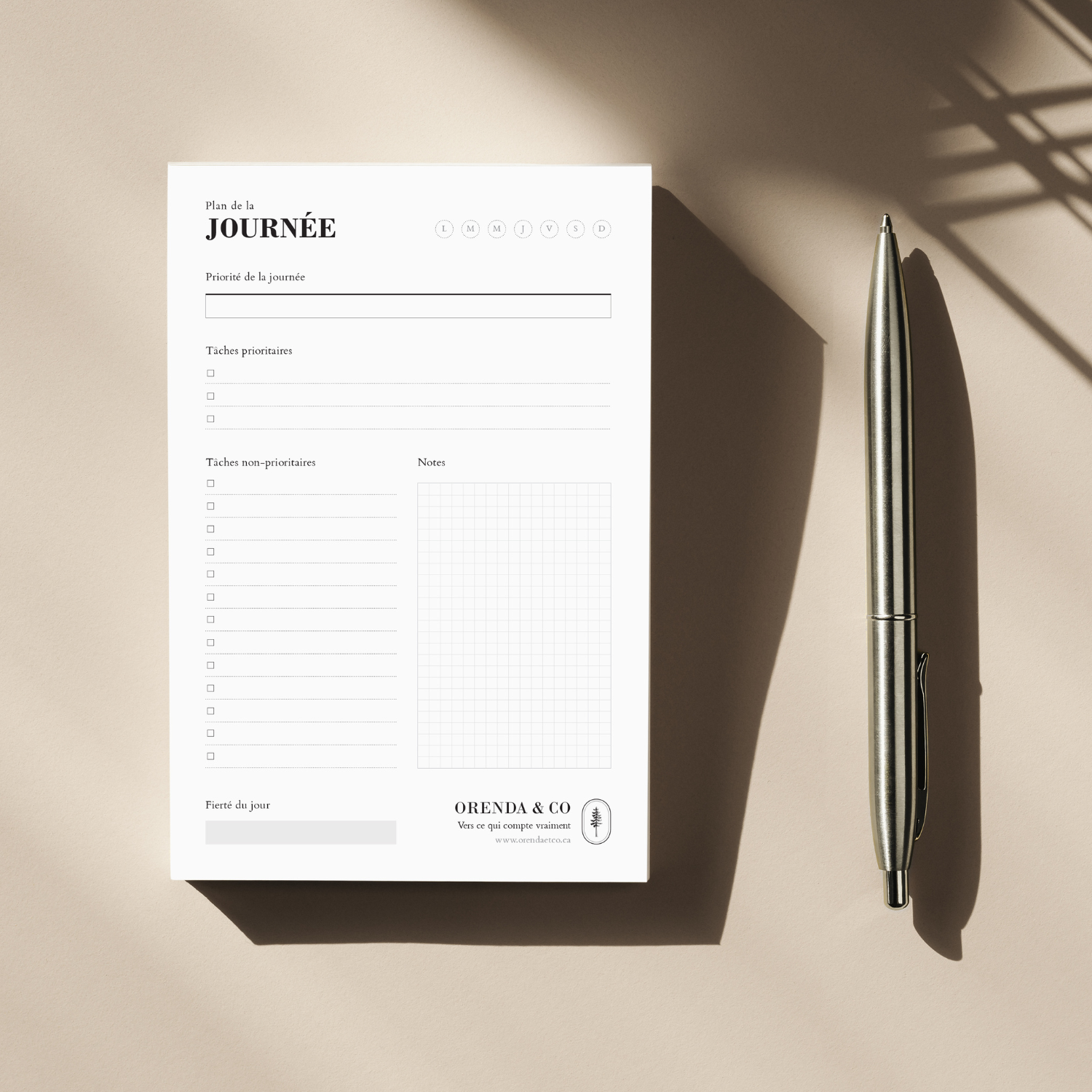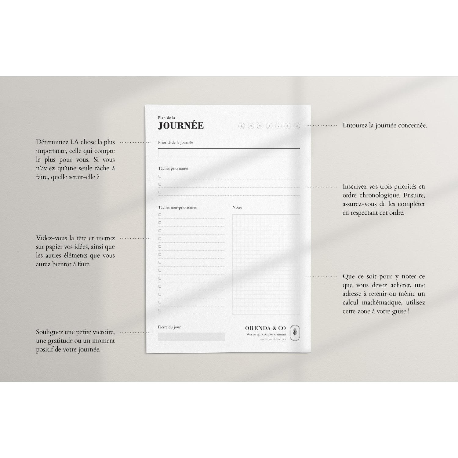 Le Bloc-Notes Journalier est l'outil idéal à utiliser quotidiennement pour tirer le meilleur de vos journées.