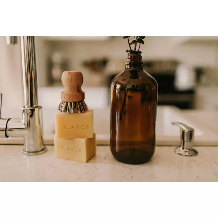 Un puissant savon à vaisselle infusé d'un parfum relaxant d'agrumes — une belle alternative écologique aux produits en bouteille de plastique.