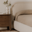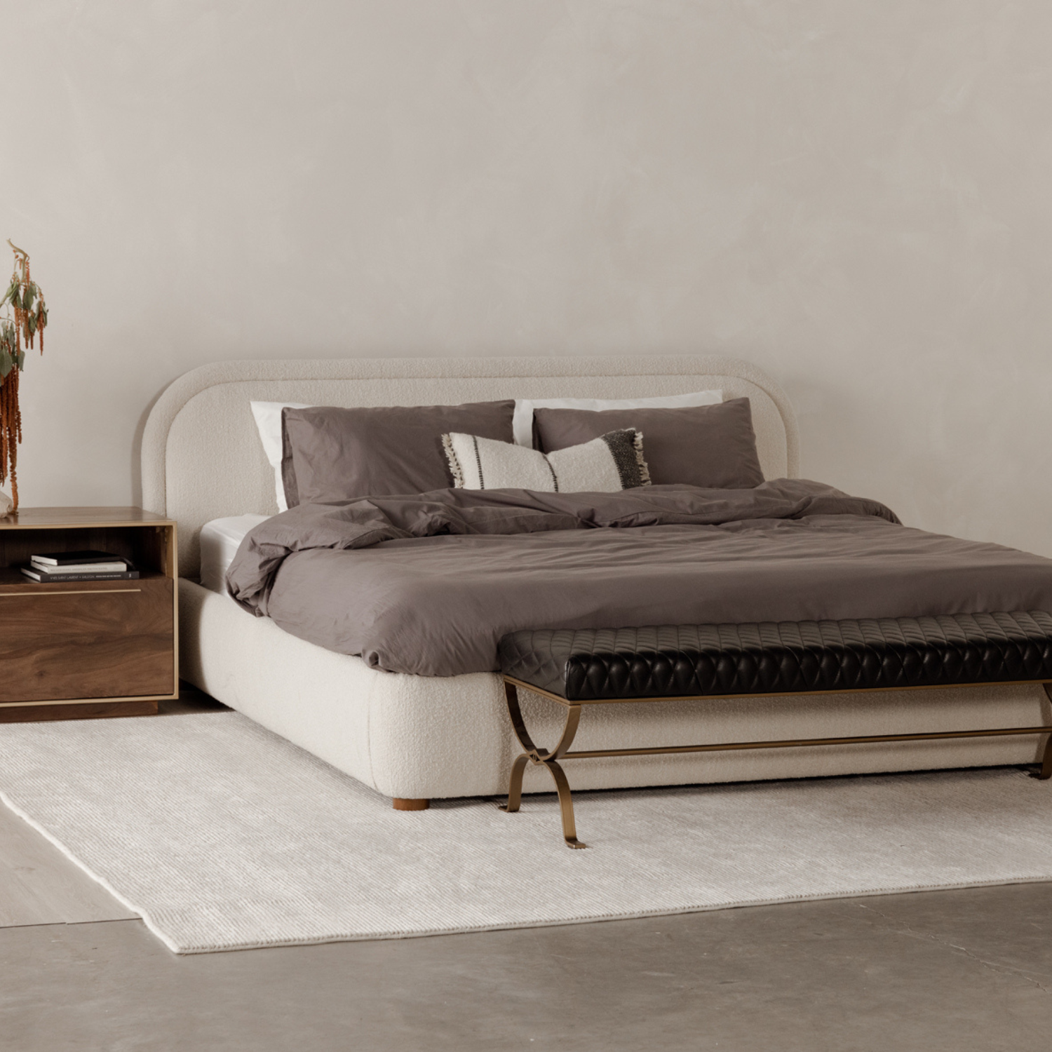Conçu pour les espaces doux et doublé de douceur, les lignes douces et les coins arrondis de ce lit donneront à votre chambre un sentiment de tranquillité. Simultanément, ses pieds de poteau en bois sombre et subtilement exposés procurent un sentiment supplémentaire de sécurité et de stabilité. Pratiquement un nuage de rêve, Colin est un lieu invitant de pure détente pour le corps et l'esprit. Reposez-vous sur le Colin et regardez vos soucis s'évanouir.