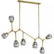 Plusieurs branches d'éclairage établissent la structure en acier de ce lustre lui donnant une forme linéaire et angulaire. Sa conception moderne permet de faire pivoter chaque lumière pour briller là où vous en avez besoin. Vous pouvez même les configurer pour le rendre plus linéaire également. Les globes en verre au lustre fumé présentent un détail cannelé qui ajoute au look d'inspiration vintage de la pièce entière. Il est fini en laiton antique. Approuvé pour une utilisation dans les espaces extérieurs couverts. La finition peut varier.