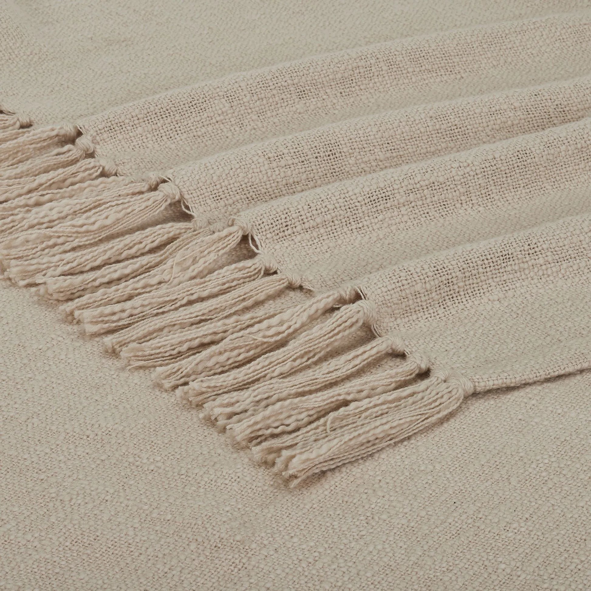 Fait entièrement de coton tissé, ce jeté de couleur beige est doté d'une texture luxueuse et d'une bordure frangée qui attirera l'attention. Même lorsqu'il n'est pas utilisé, cet accessoire ajoutera beauté et dimension à tout espace. Posez-le de manière anodine sur un canapé ou au pied d'un lit pour créer un look superposé élégant. Dès que vous aurez découvert l'ambiance décontractée et la sensation de confort de ce jeté, vous voudrez peut-être vous en procurer un pour chaque pièce.