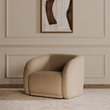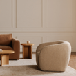 Son tissu bouclé à motifs exagérés, d'une robustesse à toute épreuve (100 000 cycles d'abrasion), apporte profondeur et une touche Art déco à sa forme contemporaine, sublimant ainsi les grands espaces.