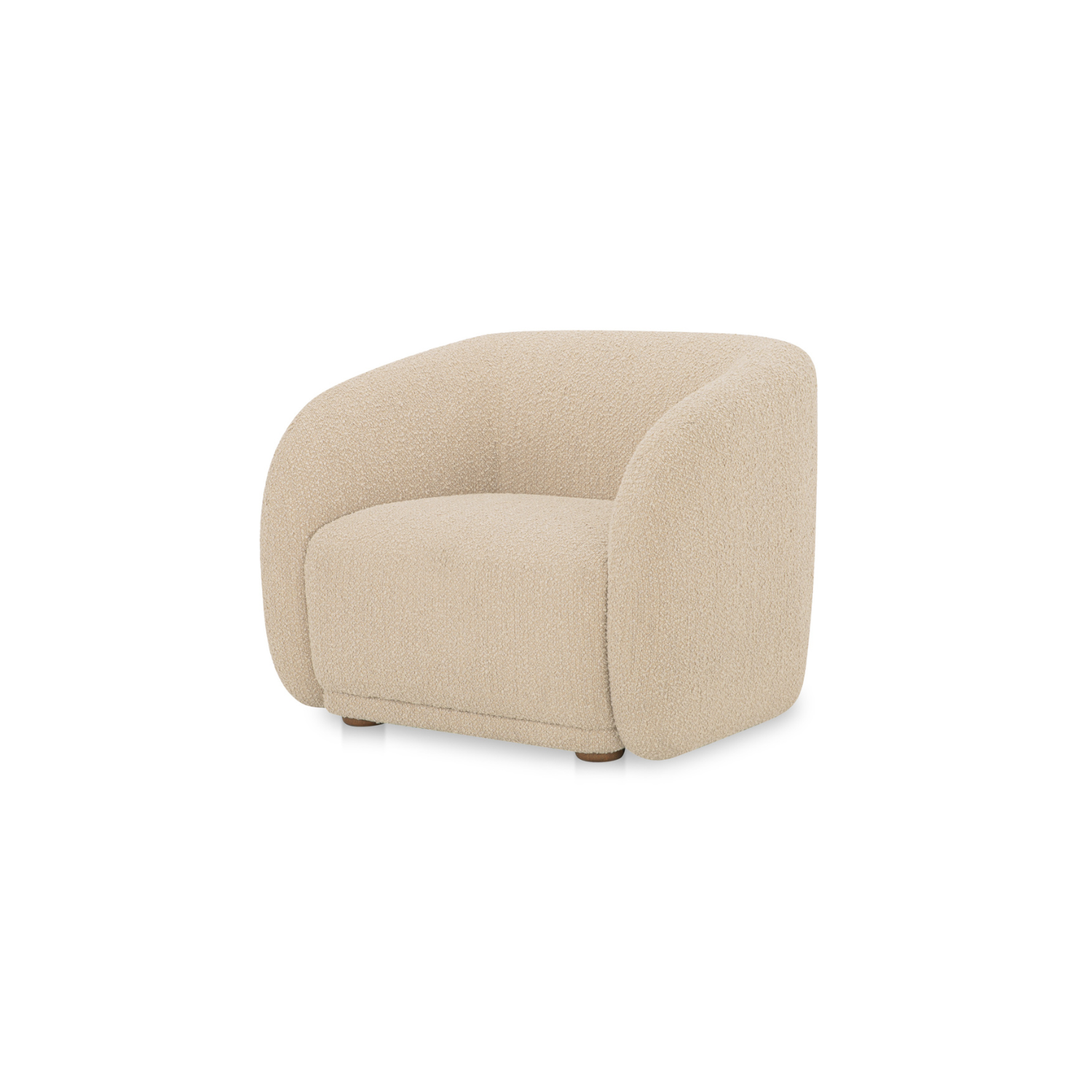 Fabriqué en hêtre massif et contreplaqué, le fauteuil d'appoint Faye se distingue par son dossier incurvé unique et son assise ferme et fixe, reposant sur de petits pieds arrondis en hévéa.