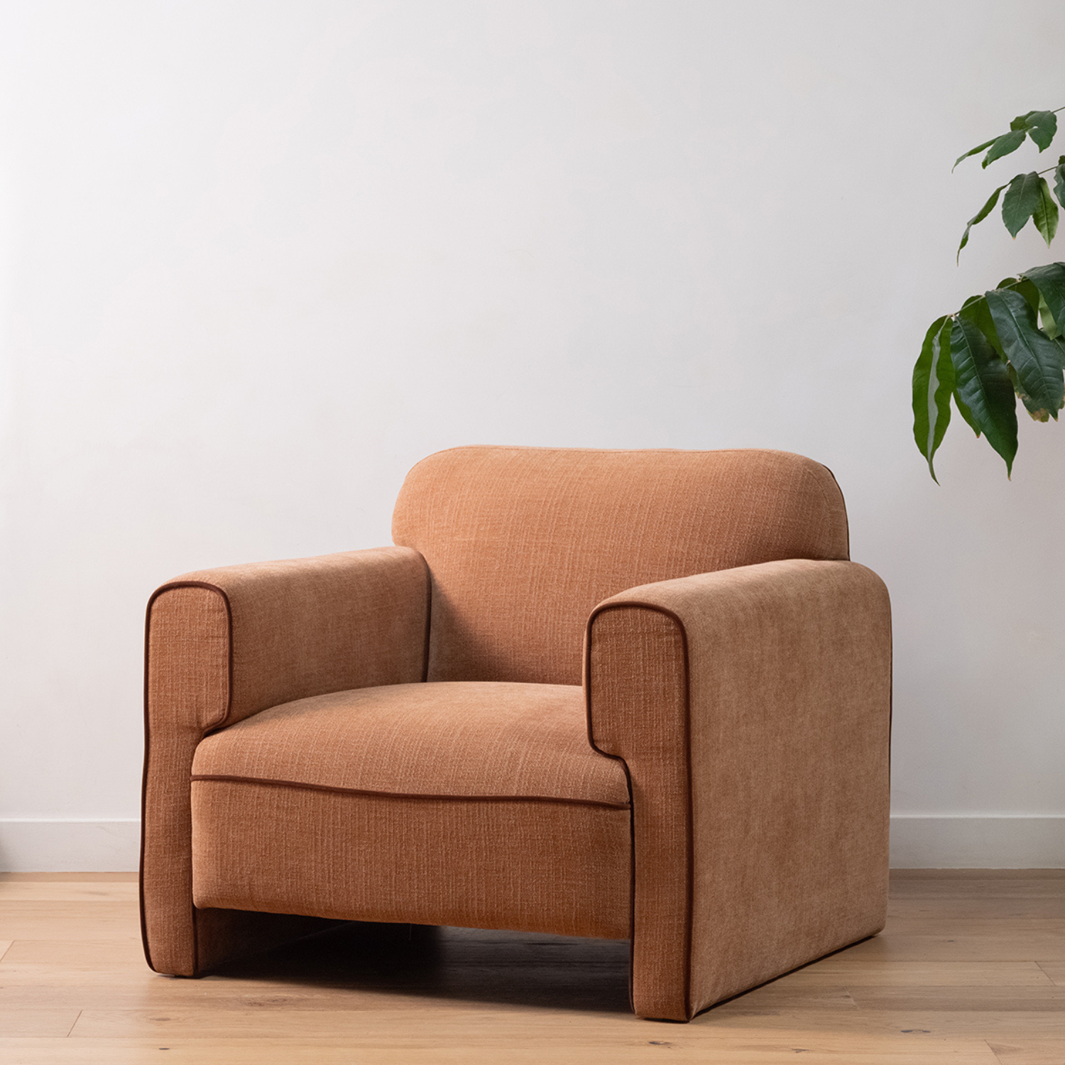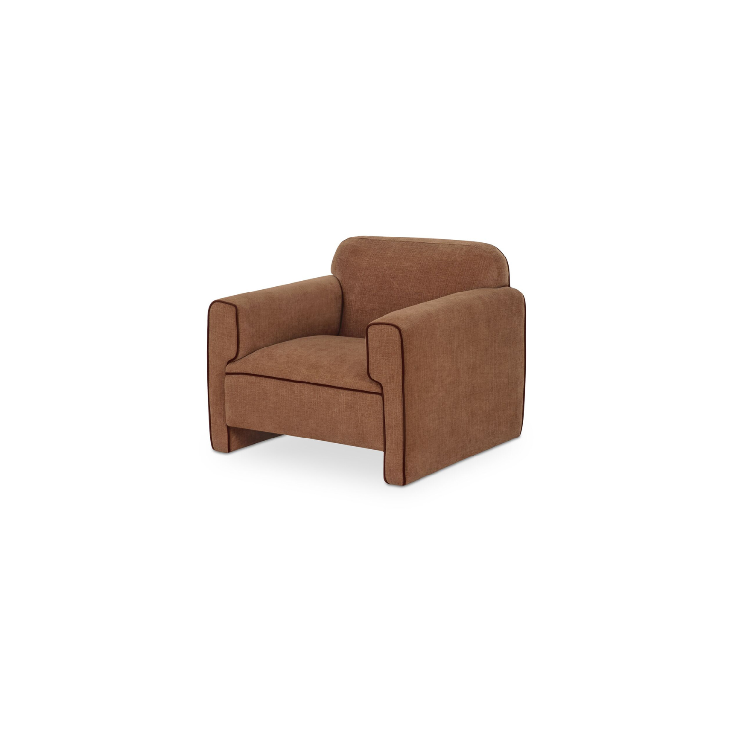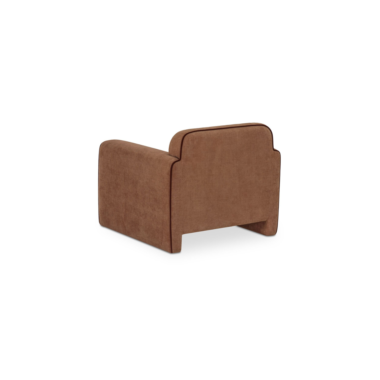Son profil carré contraste avec ses accoudoirs arrondis et son dossier sculptural incurvé, créant un équilibre parfait entre forme et fonction. Avec son passepoil ton sur ton et ses pieds entièrement rembourrés, Leo allie sophistication et personnalité, prouvant que le design réside dans les détails.