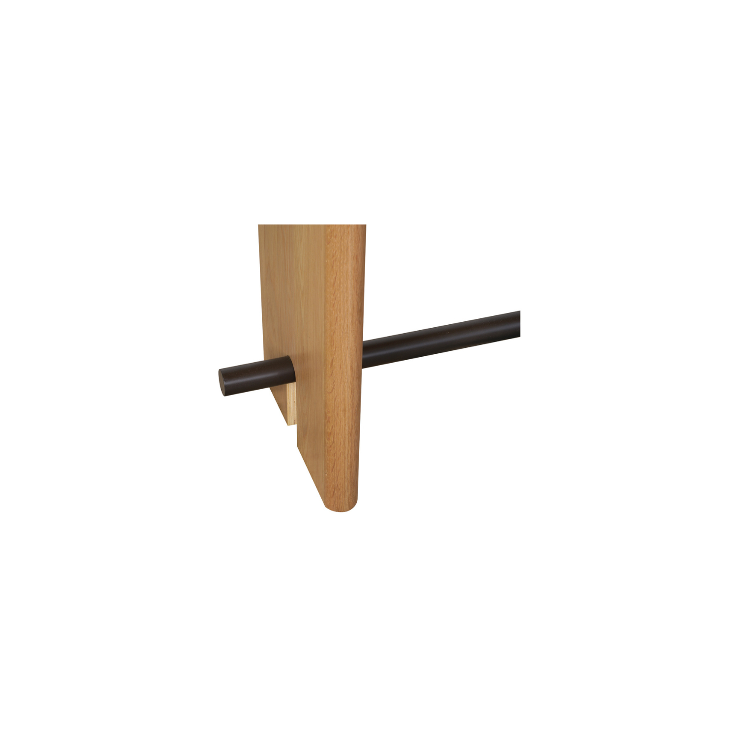 - Plateau et base en chêne massif plaqué chêne sur plateau et pied en contreplaqué. Barre d'écartement en métal.
