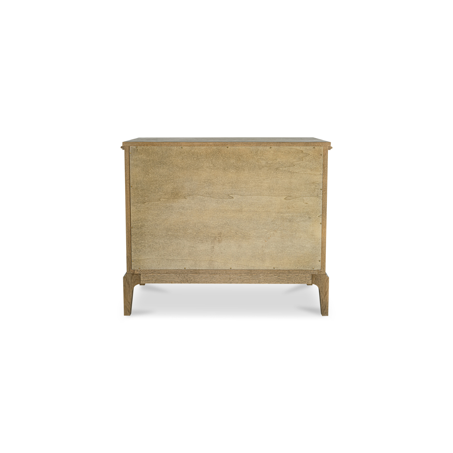 - Structure et pied en chêne finition brun moyen brossé. Côtés et plateau plaqués chêne, avec panneaux intérieurs des tiroirs plaqués chêne.