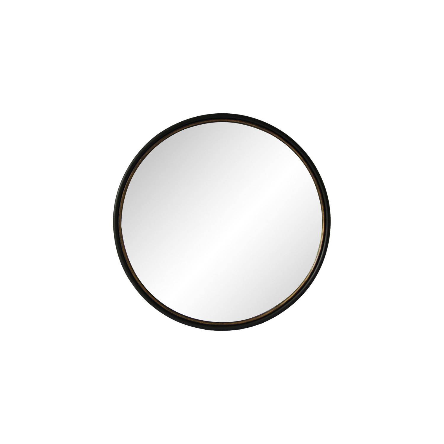 Parfait pour le placer ou le monter sur un mur pour exposer le bord élégant et arrondi du miroir. Une fine bande de détails dorés brossés se trouve entre la bordure et le miroir pour une couche supplémentaire de sophistication.