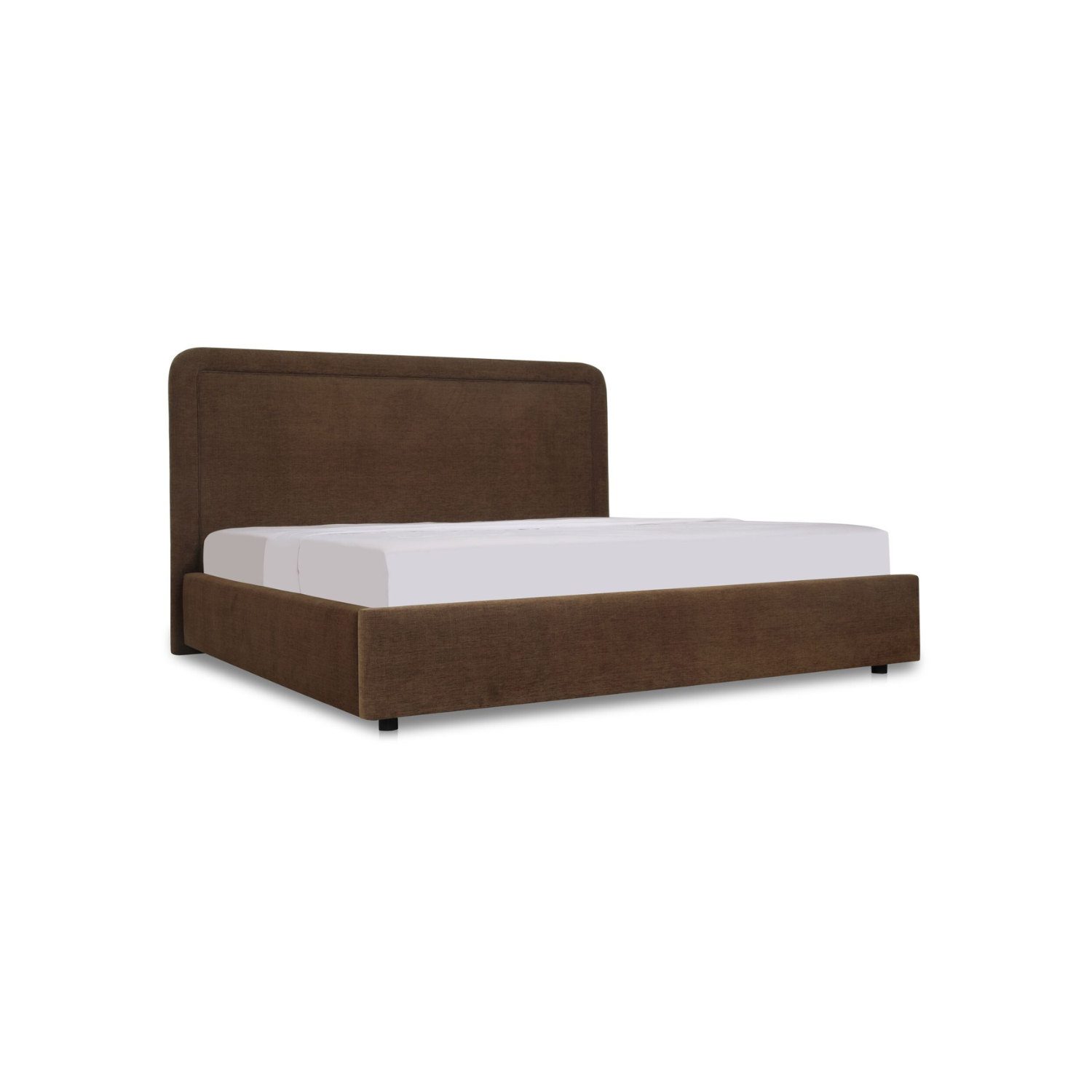 Un lit au charme caché. Le lit Simon présente une silhouette arrondie avec des détails passepoilés, et son revêtement en polyester marron allie chaleur et durabilité.