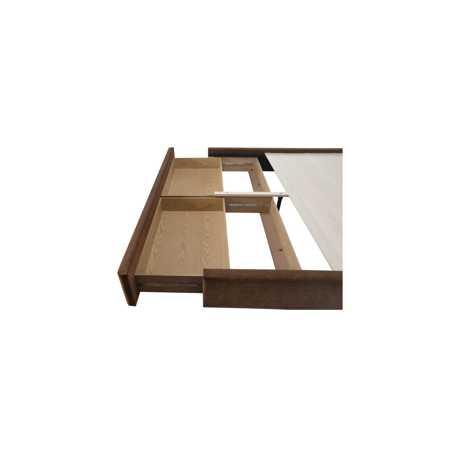 - Rangement tiroir : Le pied de lit coulissant révèle un espace de rangement à deux panneaux, permettant d'organiser les objets du quotidien tout en préservant une esthétique soignée.
