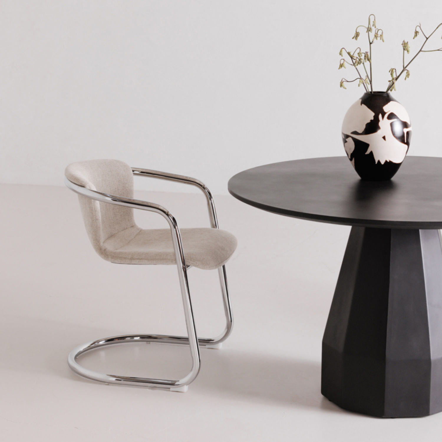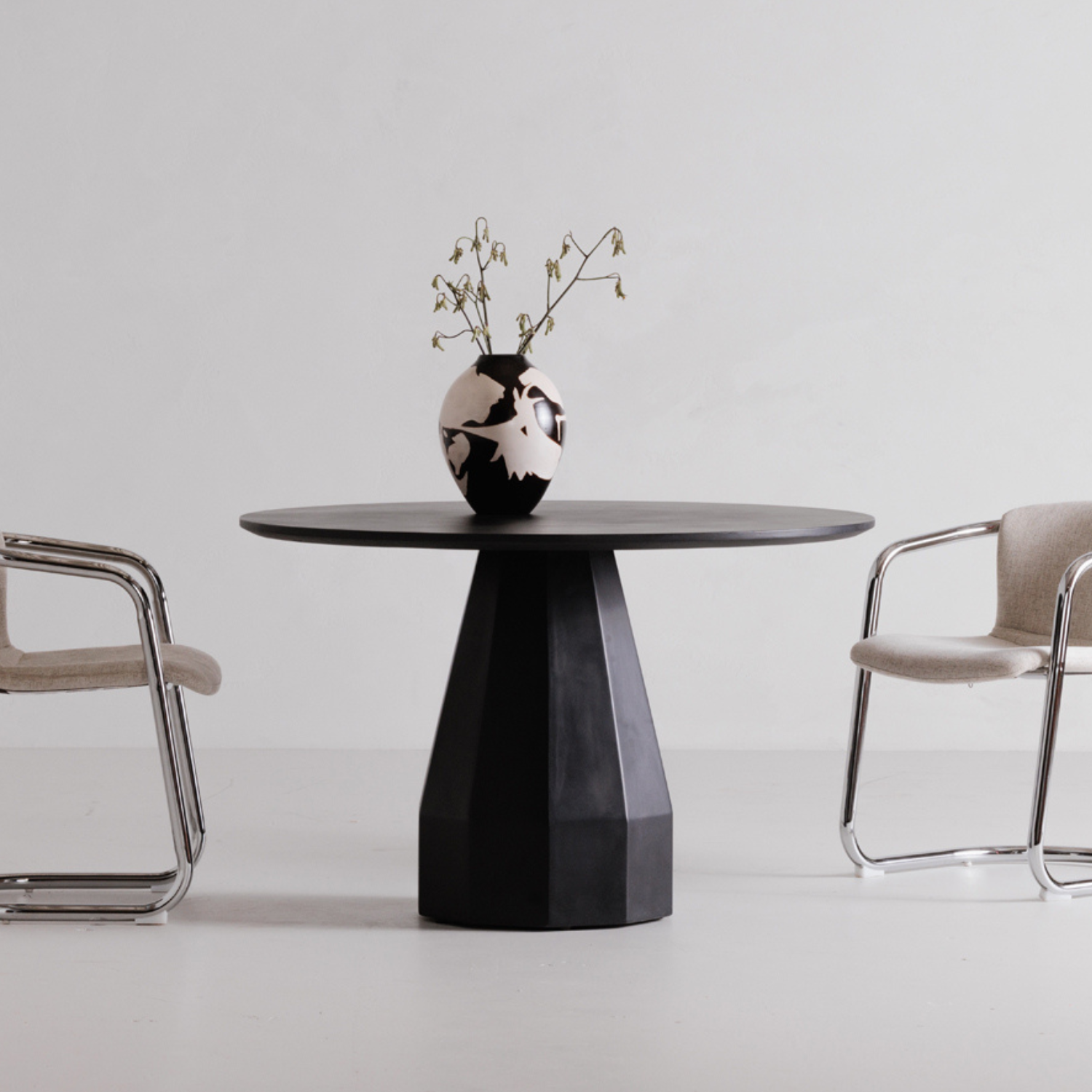 Avec une surface texturée unique, la construction en béton et la base géométrique de la table d'intérieur/extérieur Templo apporteront des vibrations sculpturales élégantes à votre patio.