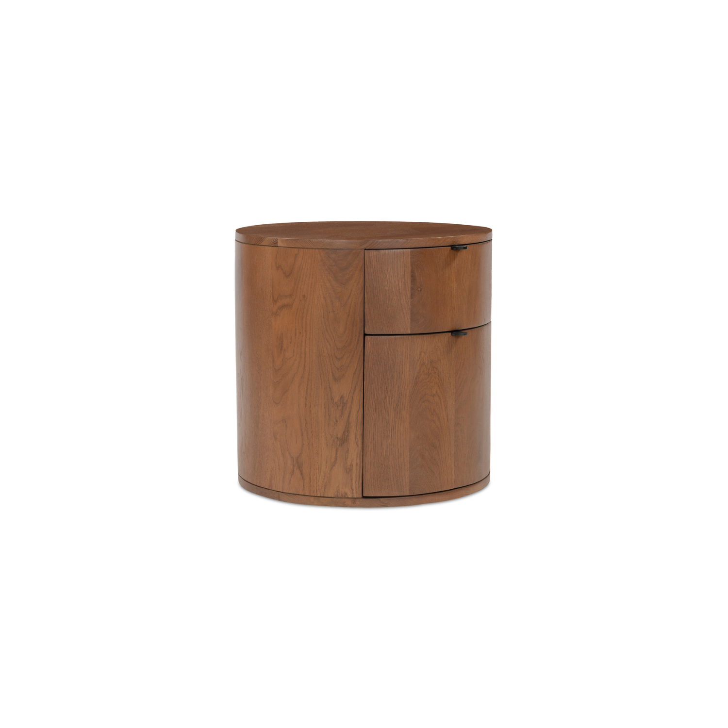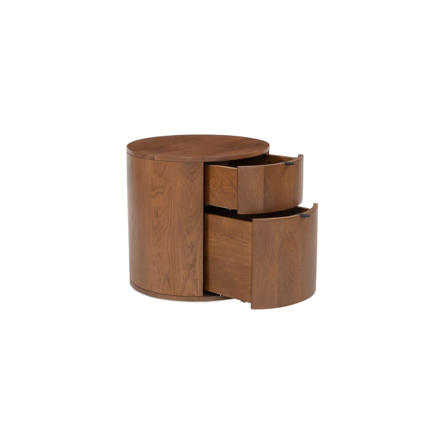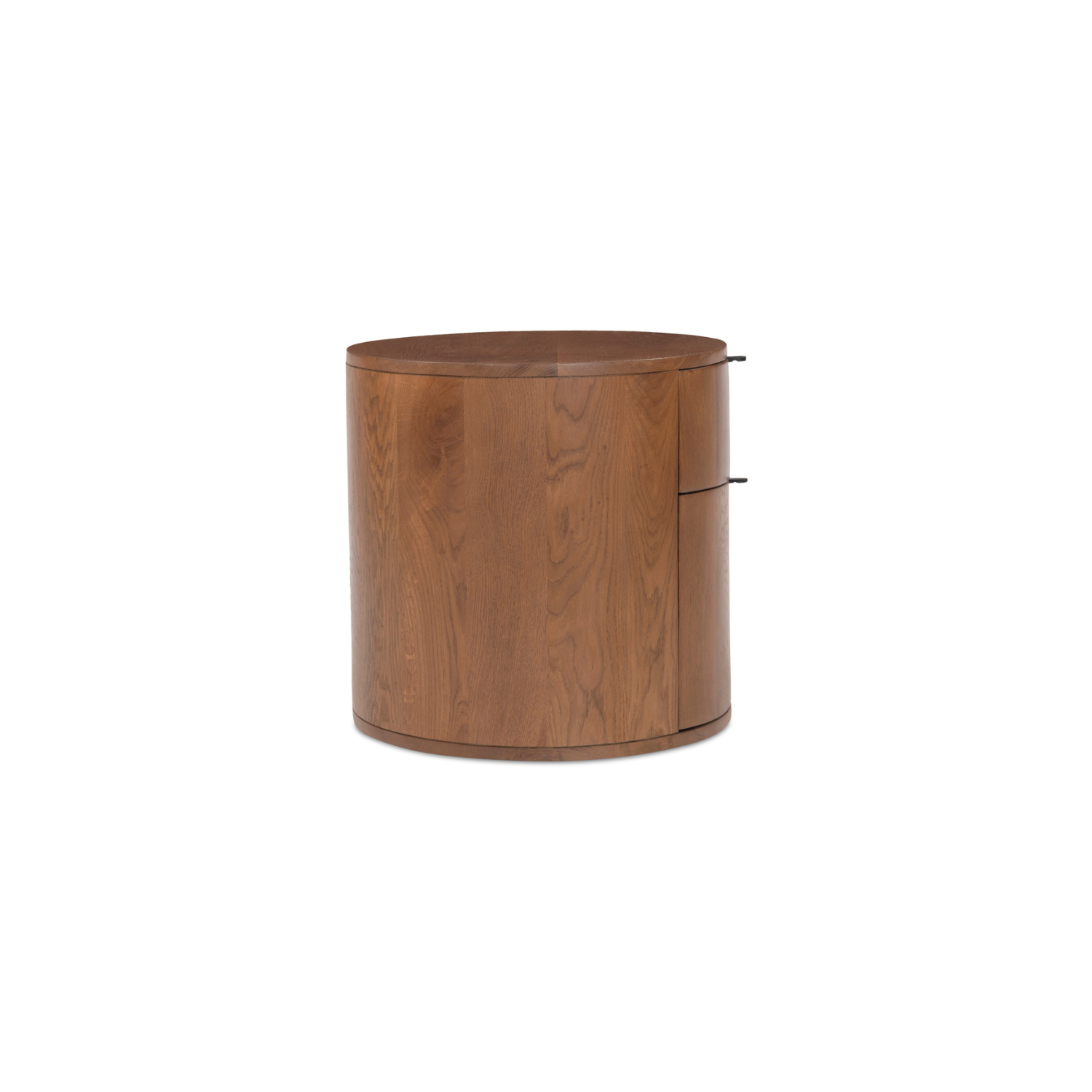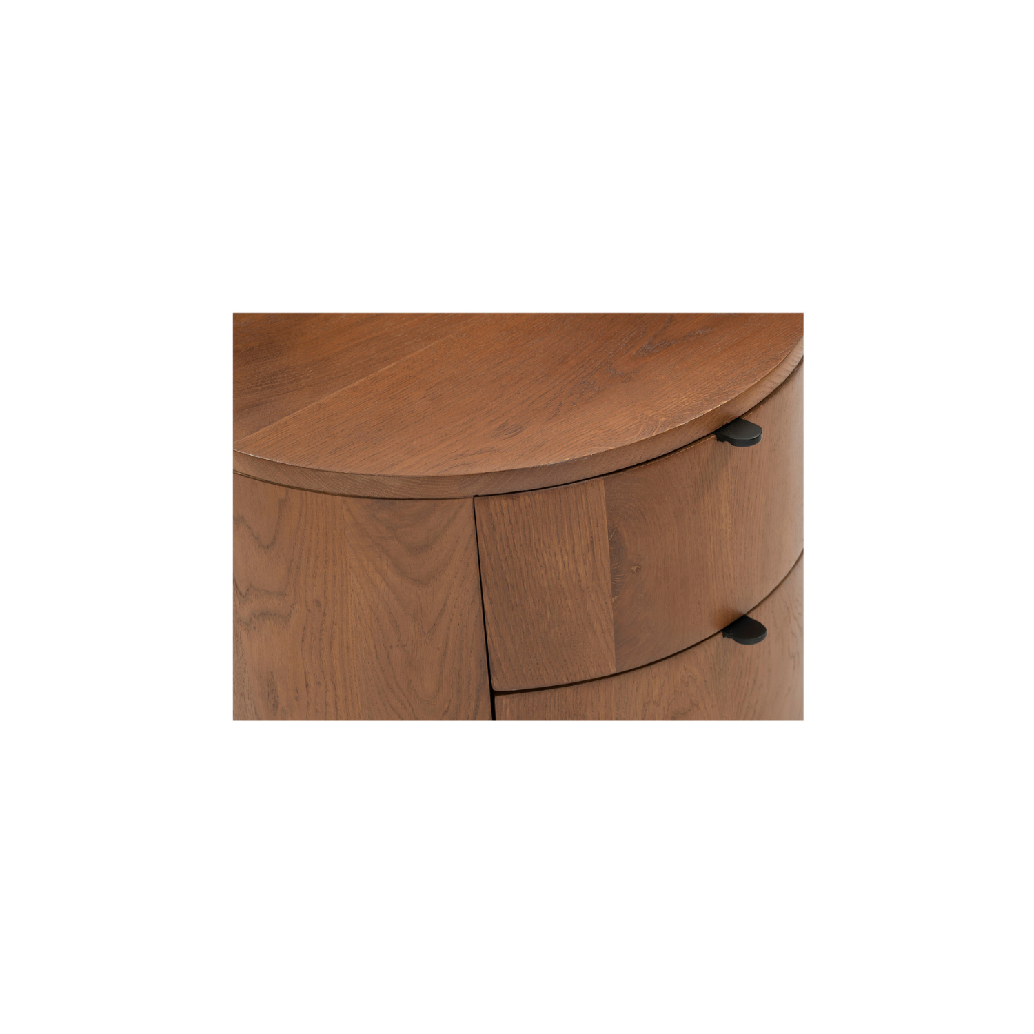 Courbée et fonctionnelle, comme on l'aime. La table de chevet Theo allie géométrie douce et fonctionnalité au quotidien, apportant une silhouette arrondie aux espaces modernes. Fabriquée en chêne massif avec une finition naturelle semi-brillante, son veinage organique et ses variations de tons rendent chaque pièce unique.