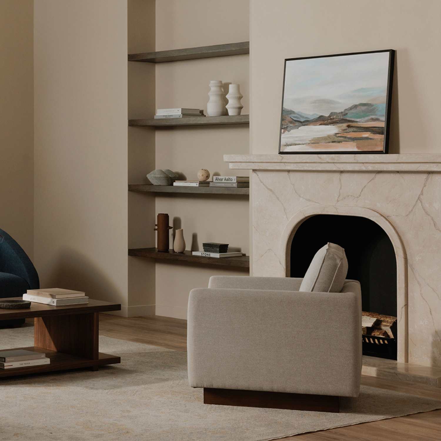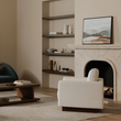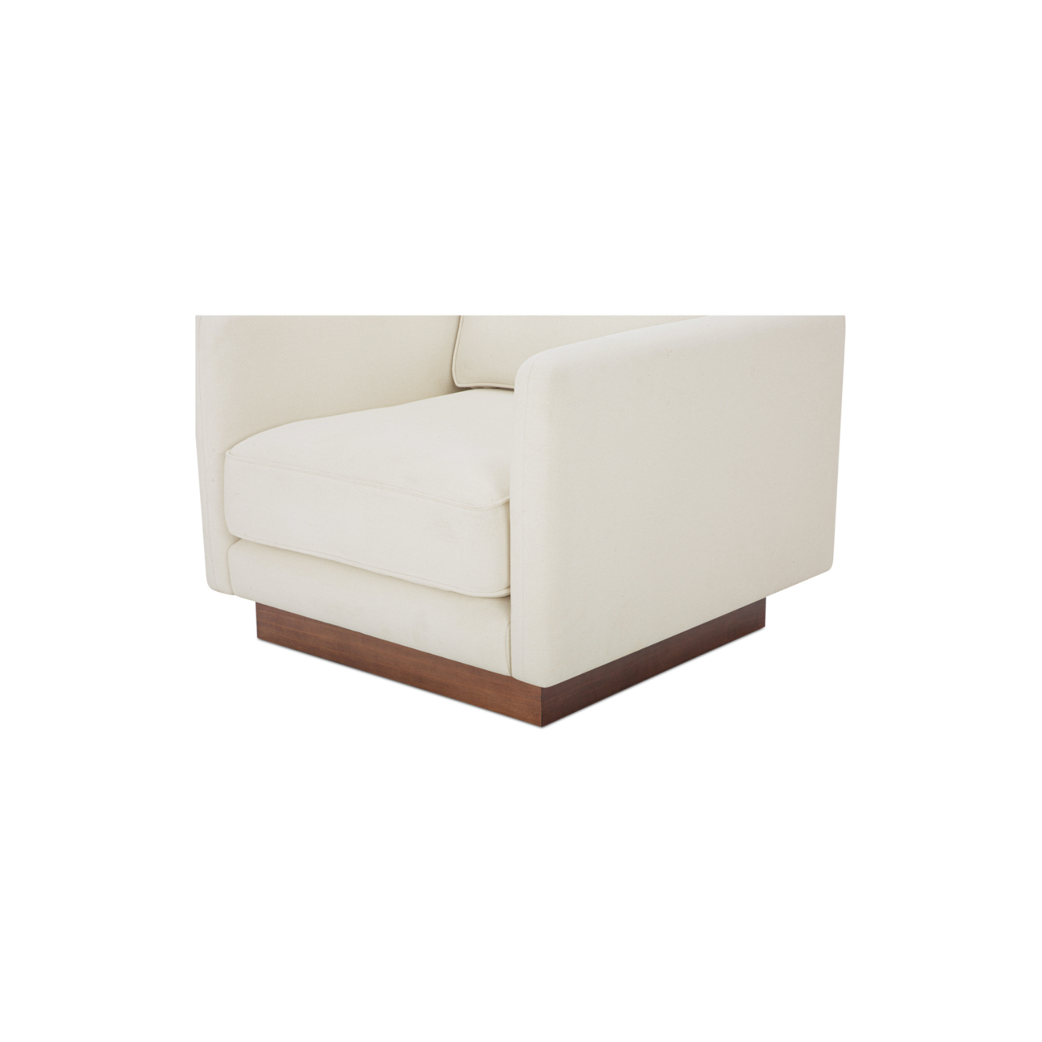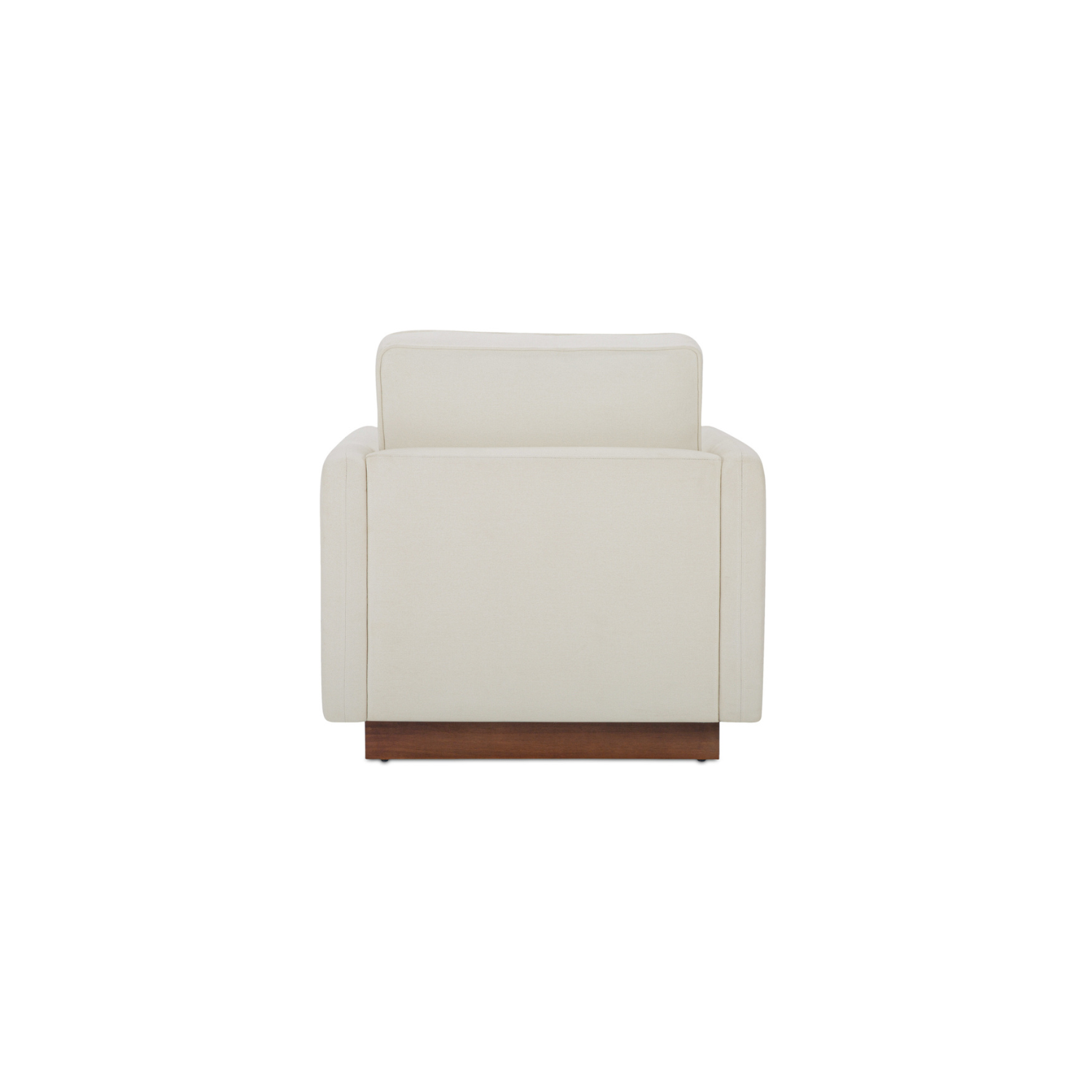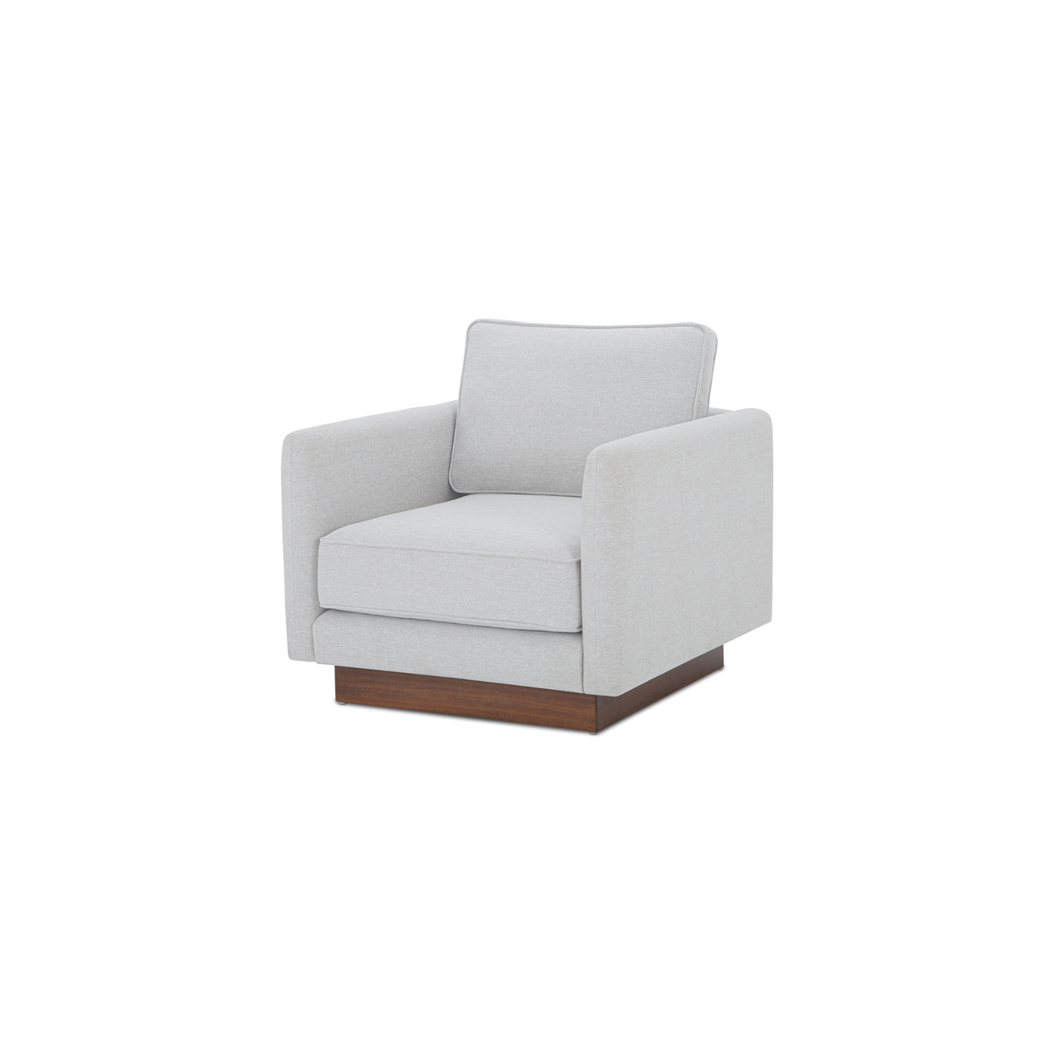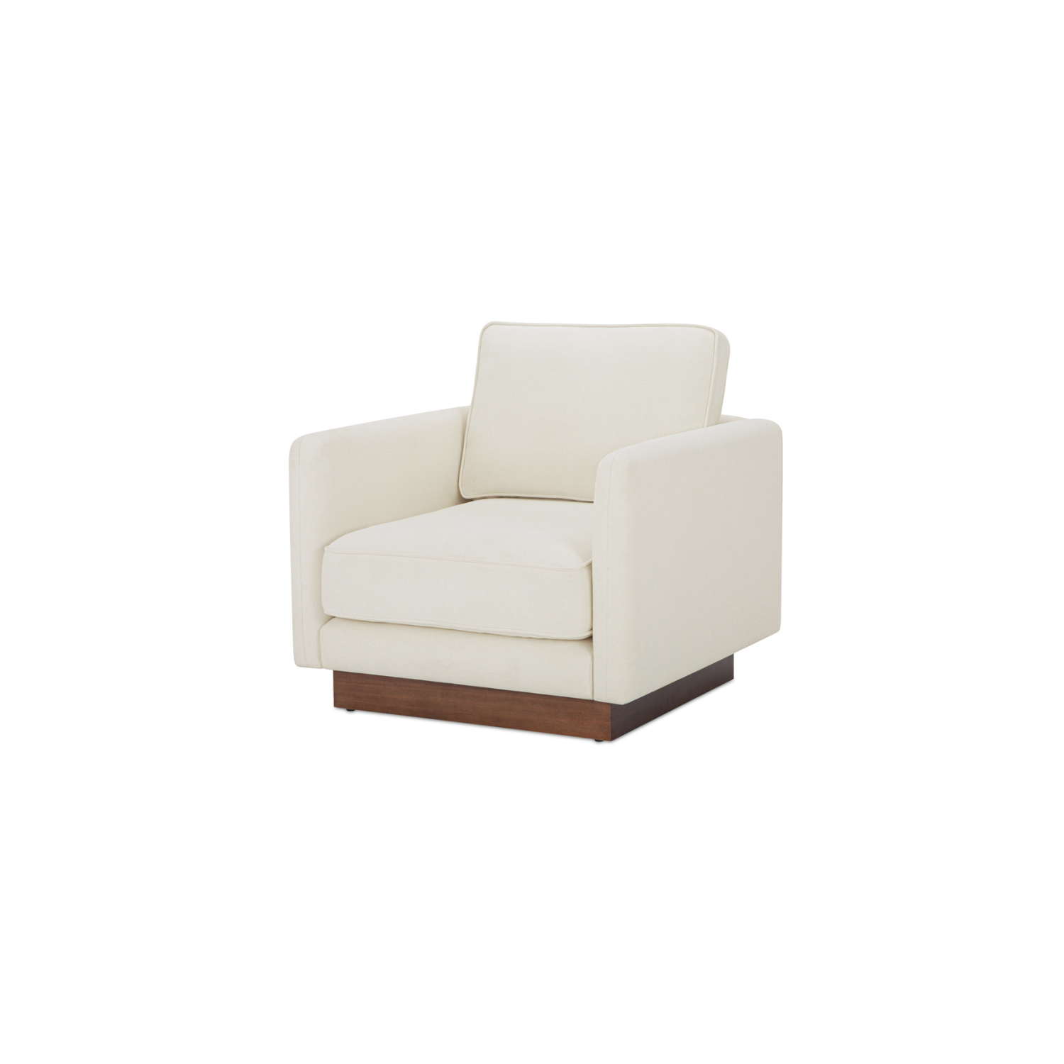 Le fauteuil Vernon allie le design du milieu du siècle à une fonctionnalité moderne. Son socle en bois lui confère une allure plus légère et élégante.