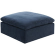 Un pouf bleu marin prêt pour tous les dégâts liés à la gestion d'une maison occupée !