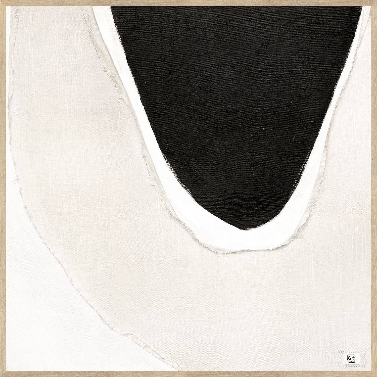 Un collage graphique audacieux mettant en vedette la texture du lin et l'apparence de fibres peintes, effilochées et pliées.