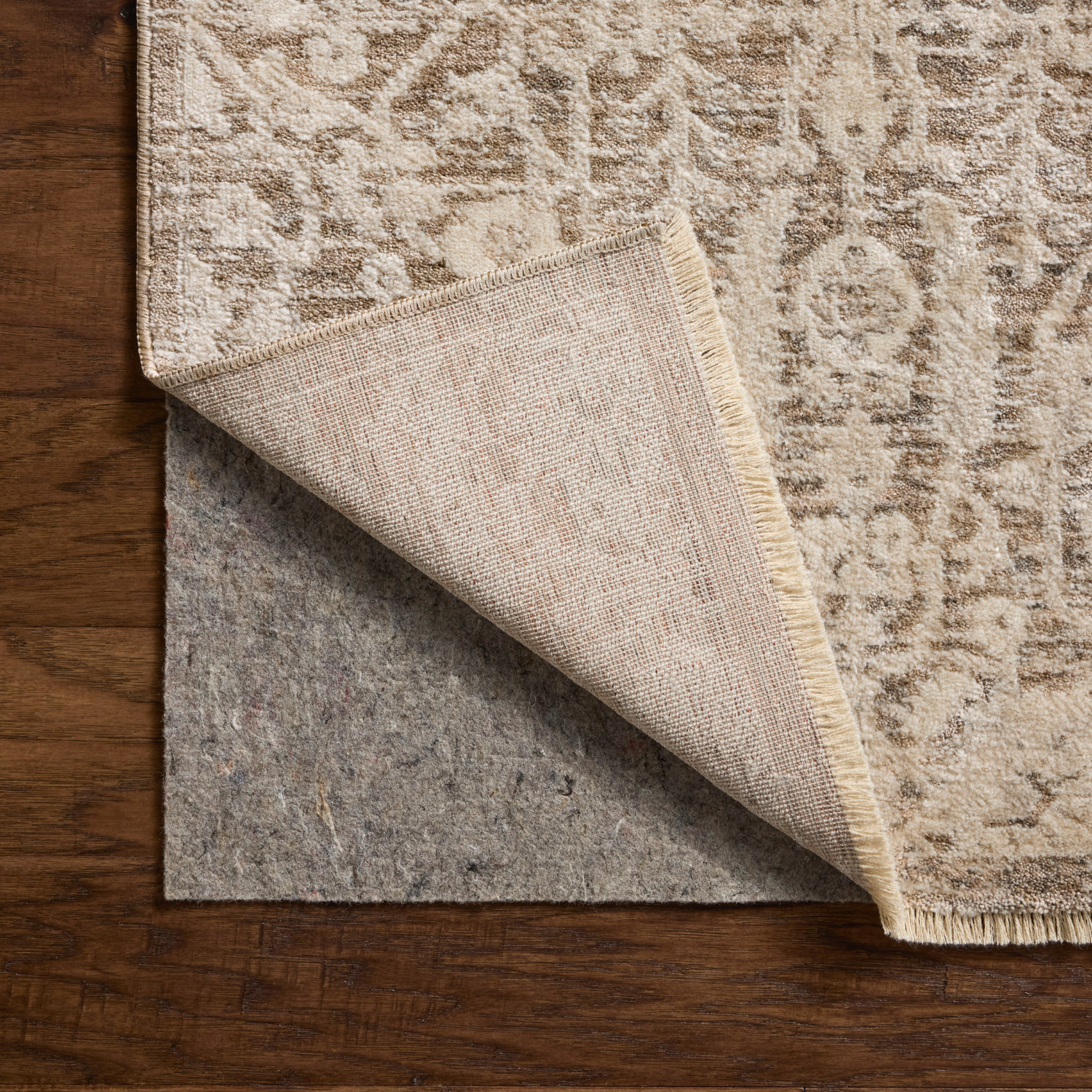 Clean spills immediately by blotting with a clean, dry sponge or cloth. Appropriate rug pad is highly recommended on all surfaces to prevent slipping, add cushion, and improve durability. Professional cleaning recommended. For vacuuming, use a vacuum cleaner without a beater bar or one where you can set the bar to the highest pile setting. If your vacuum has variable power settings, set on low. Vacuum full length of the rug, turn and repeat to the next area, rather than back and forth motion.