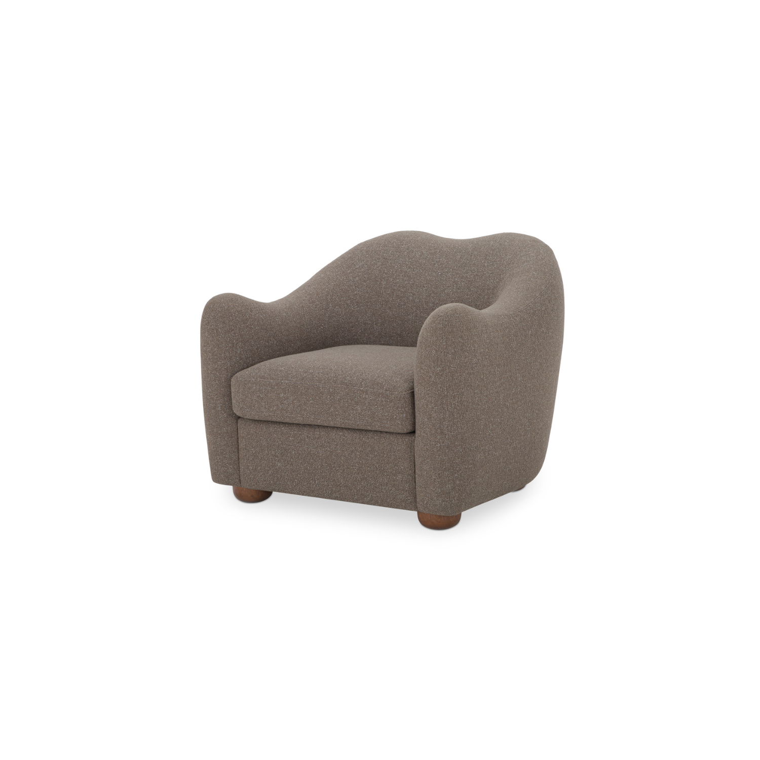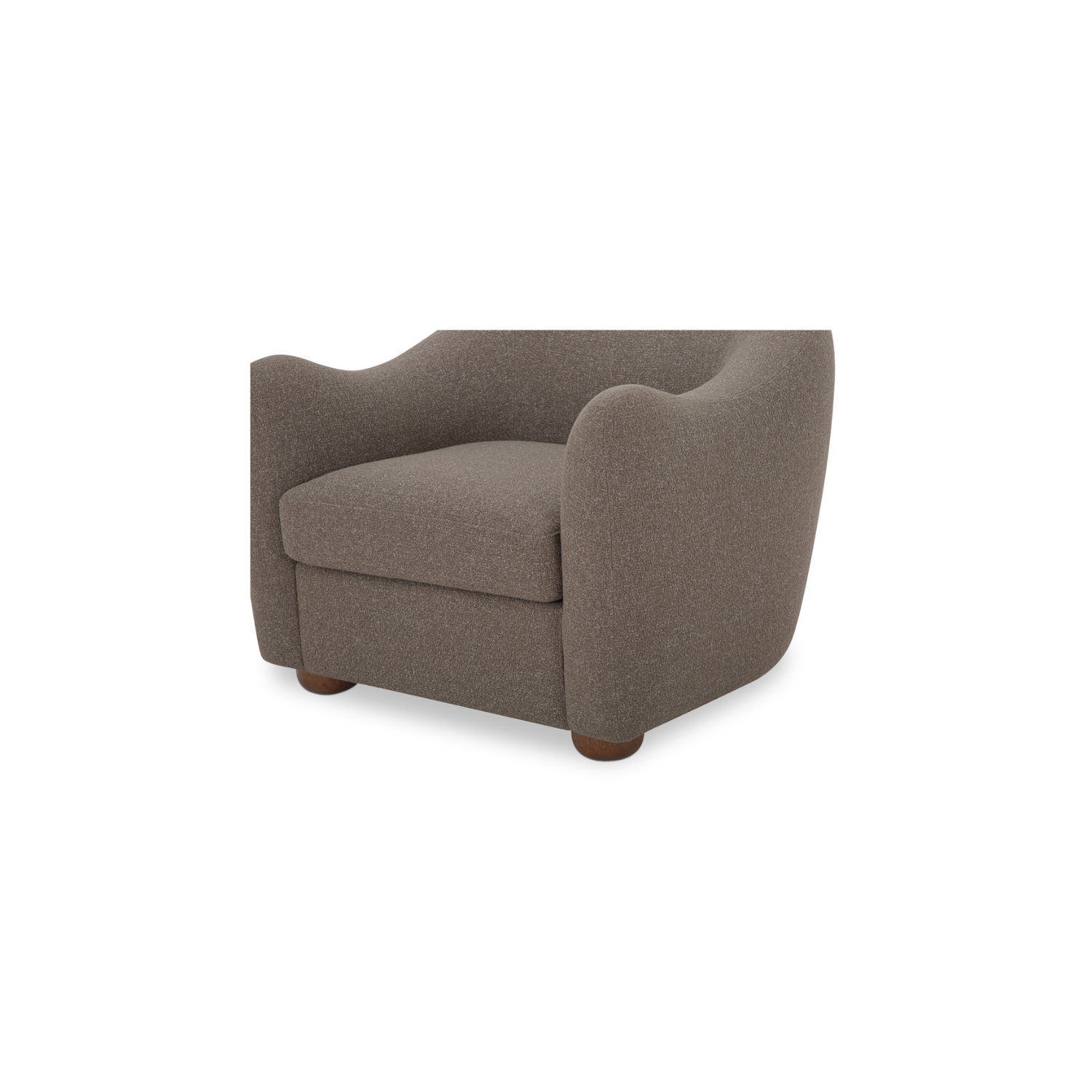 - Curved rubber wood foot finished in warm brown