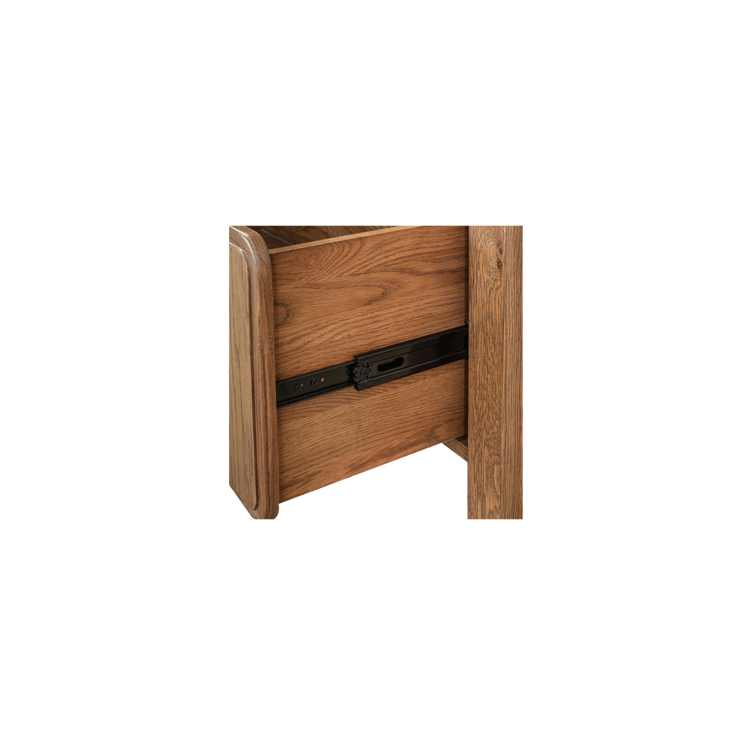 - Solid oak frame & leg with oak veneer side panel & drawer front