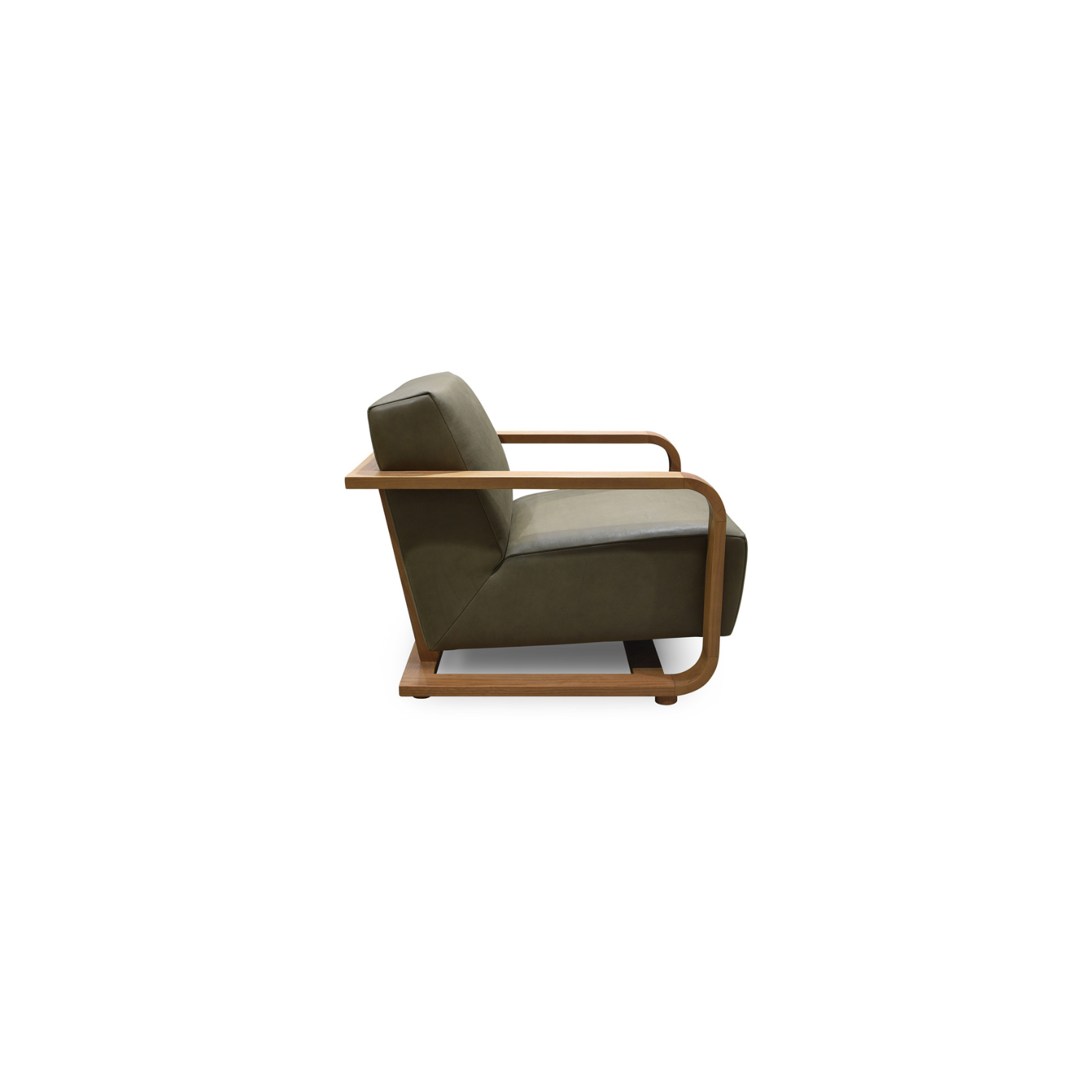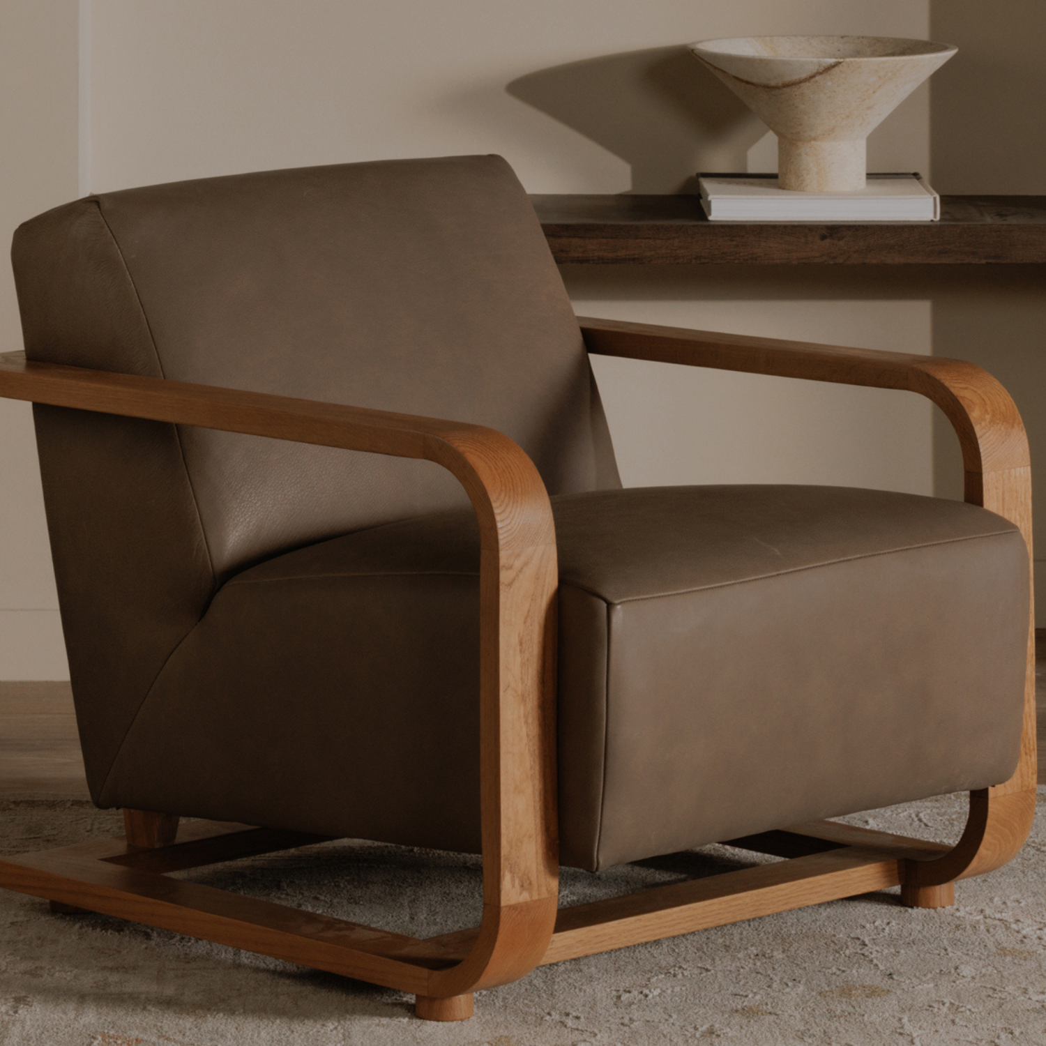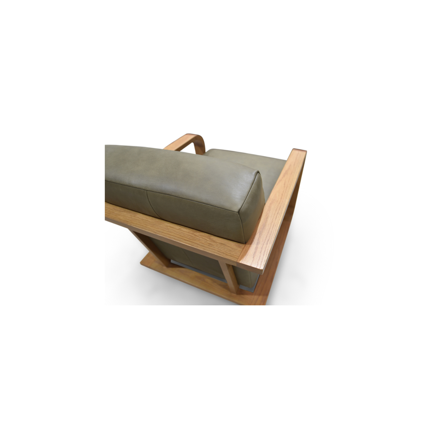 While generous in its proportions, the wide, sturdy arm profile is perfectly complemented by the plush top-grain leather upholstery, offering an irresistibly inviting tactile experience
