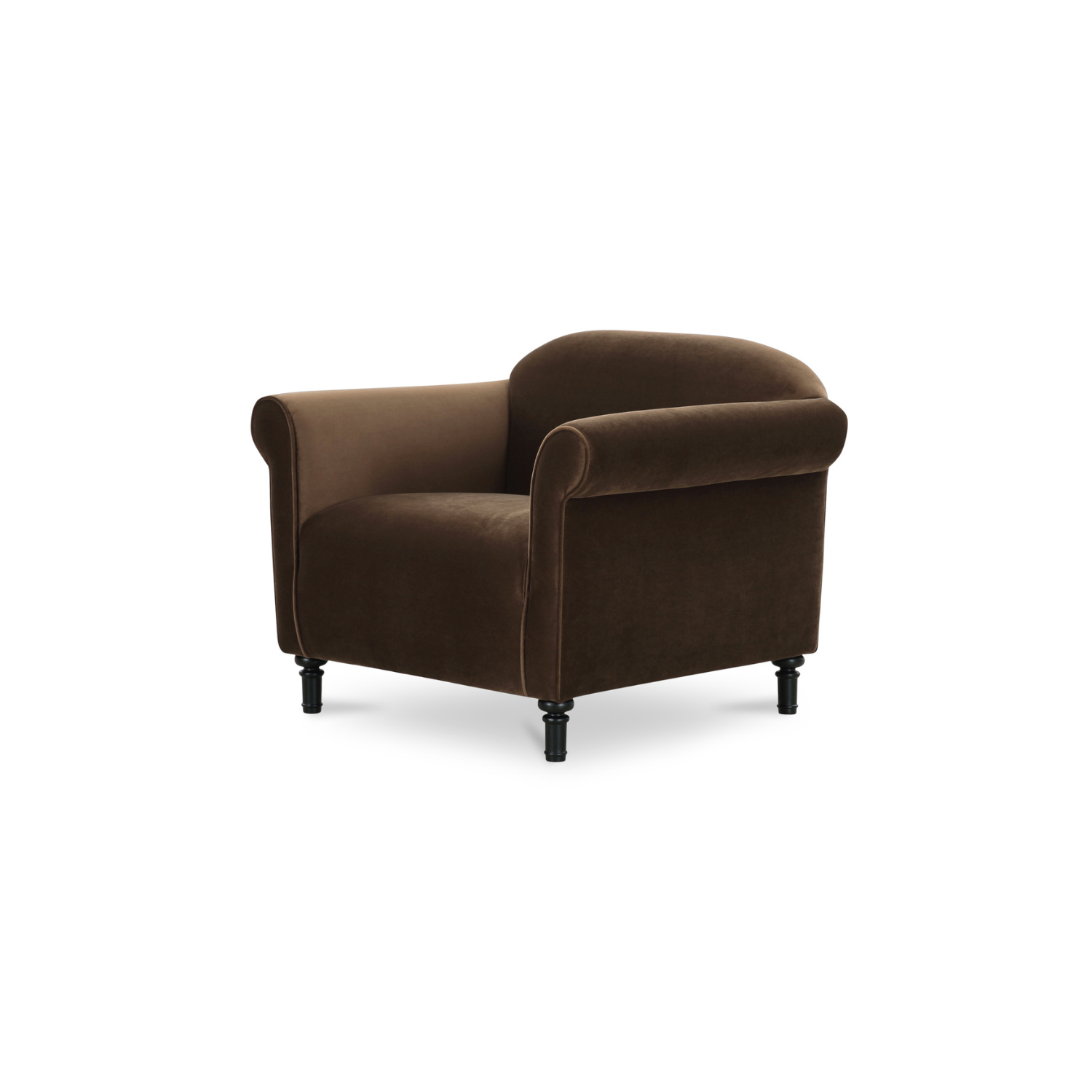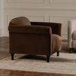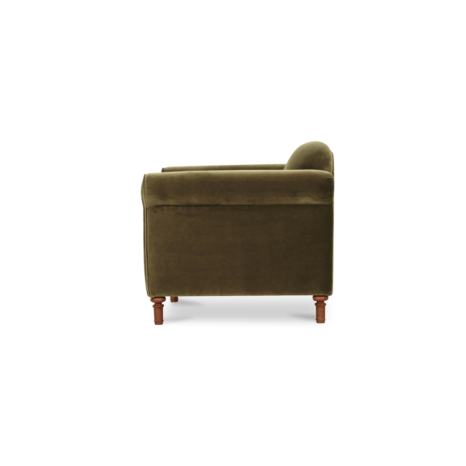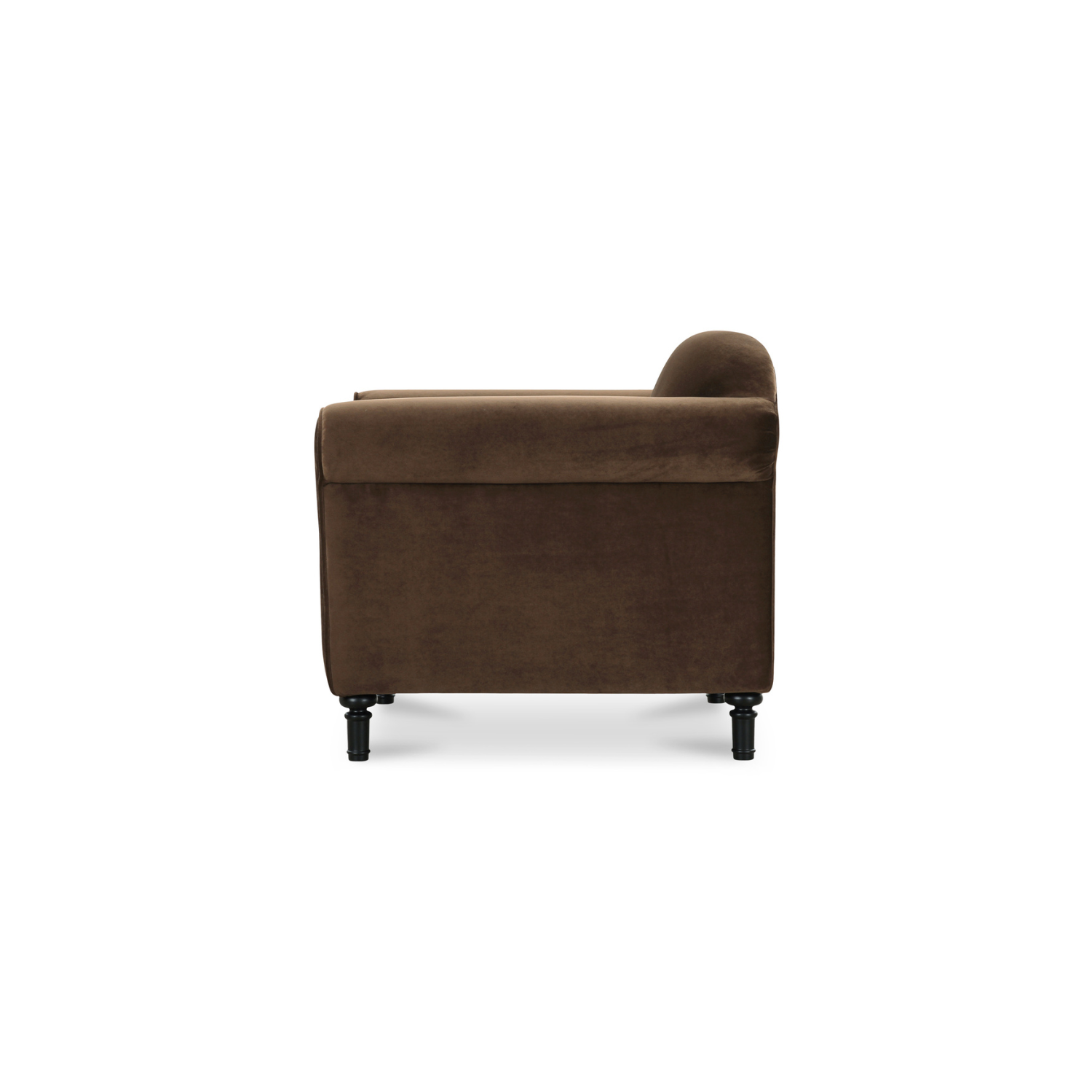 Upholstered in dense velvet-like faux mohair, the Harmony accent chair embodies traditional elegance showcasing soft rolled arms with a subtle, gentle curve and finished with exquisite piping detailing that extends from the arms to the back.