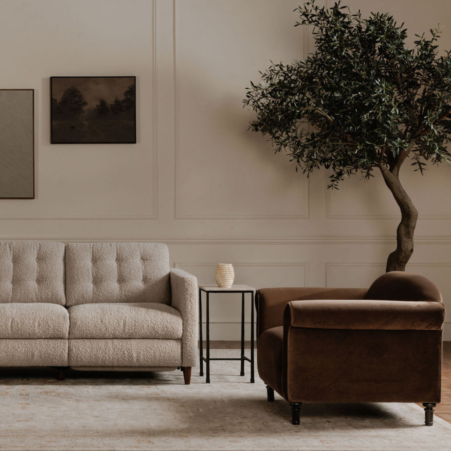 • Soft rolled arm with subtle, gentle curve & finished with piping detailing along the arms & back