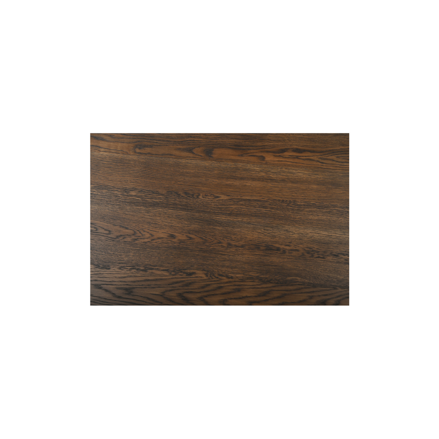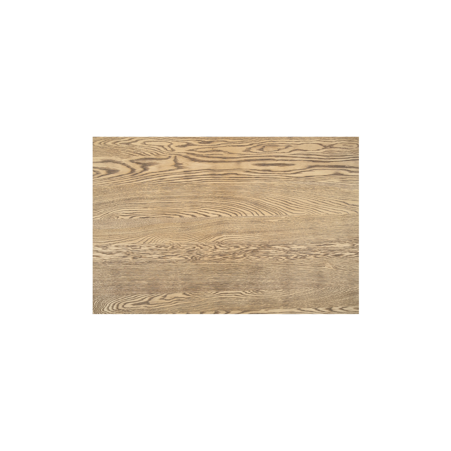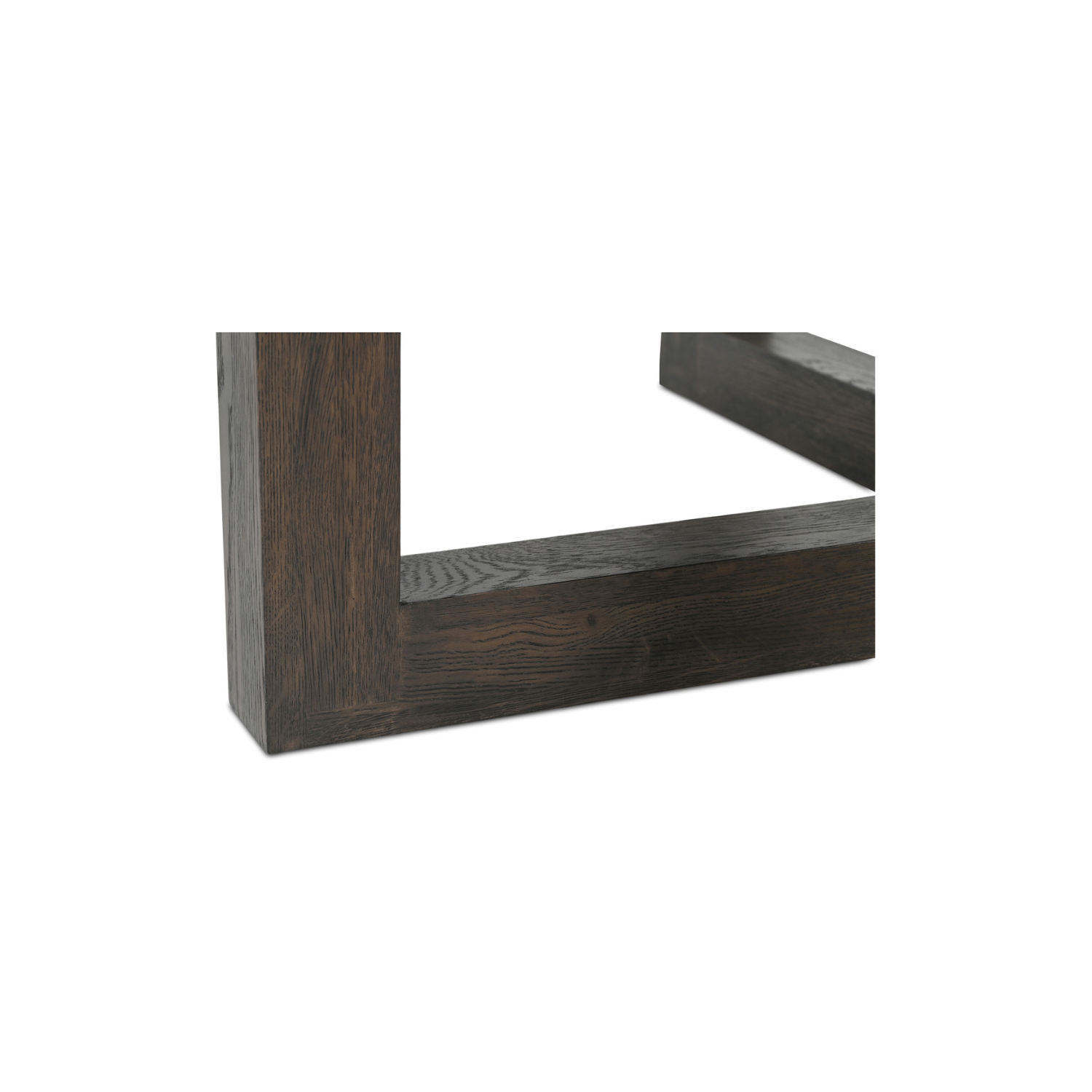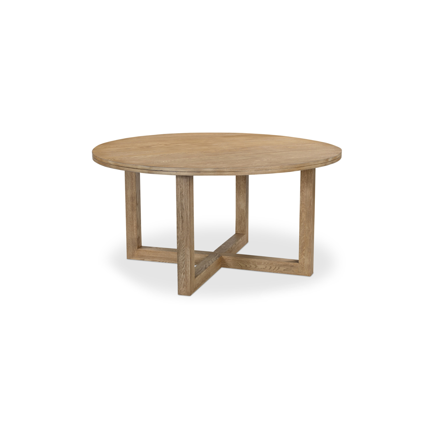 The geometric base, with crisscrossing stretchers, grounds the piece with quiet confidence. A natural, wire-brushed finish enhances the oak's organic beauty, creating a focal point of understated elegance.