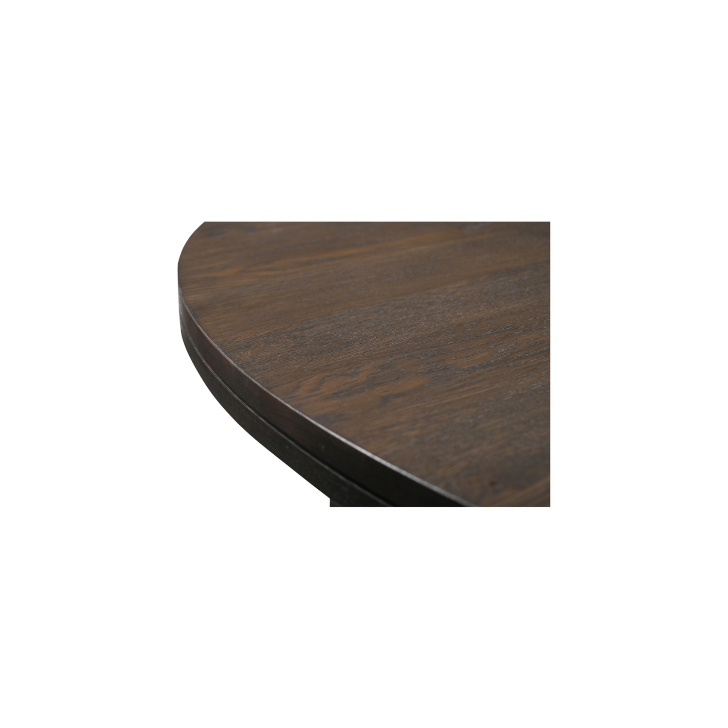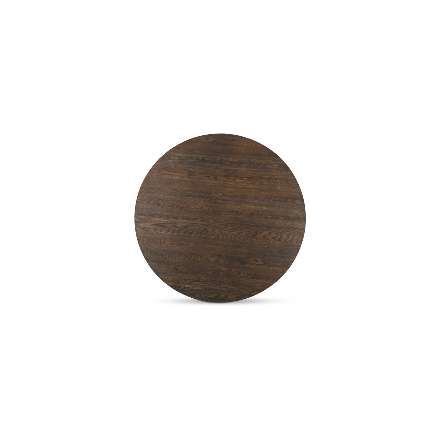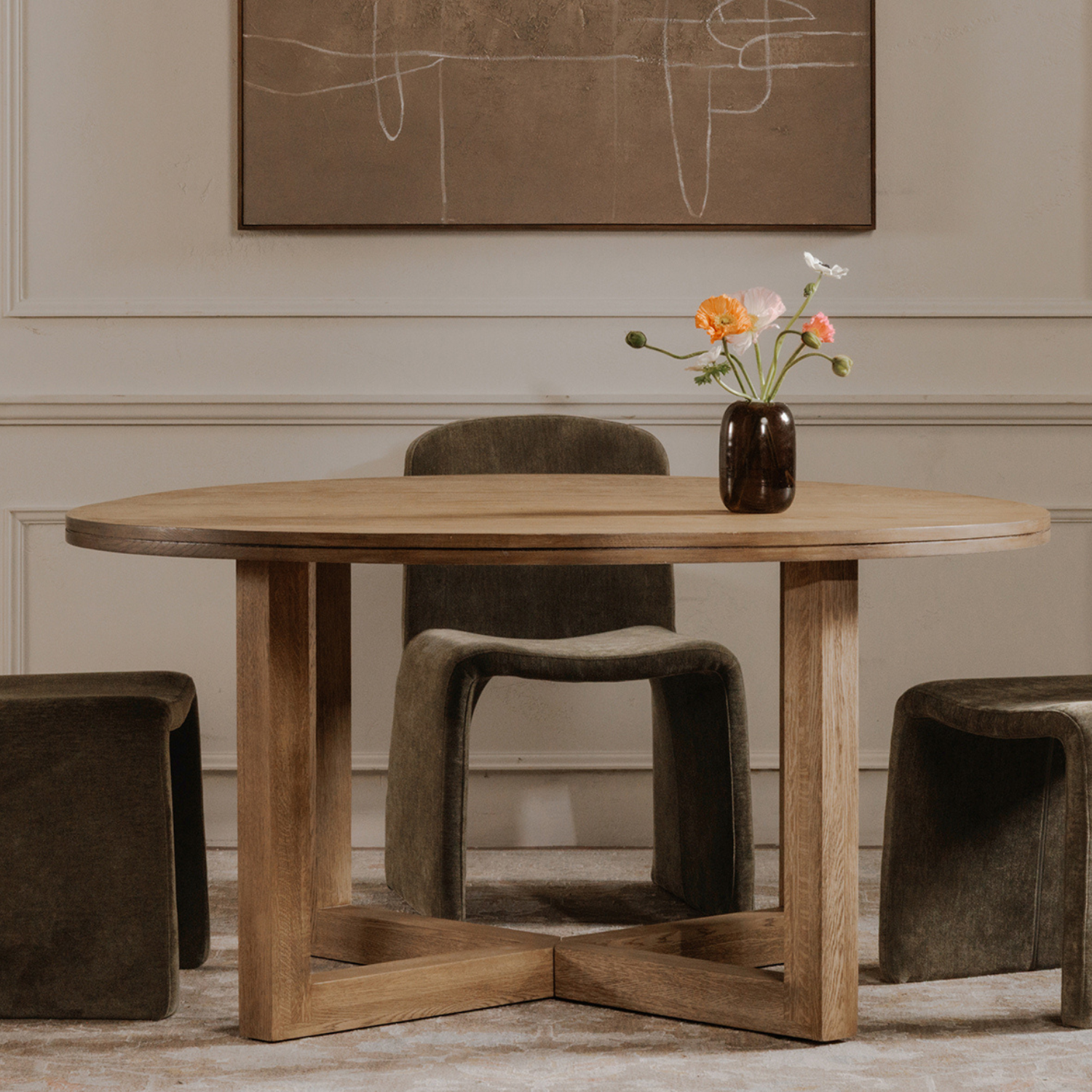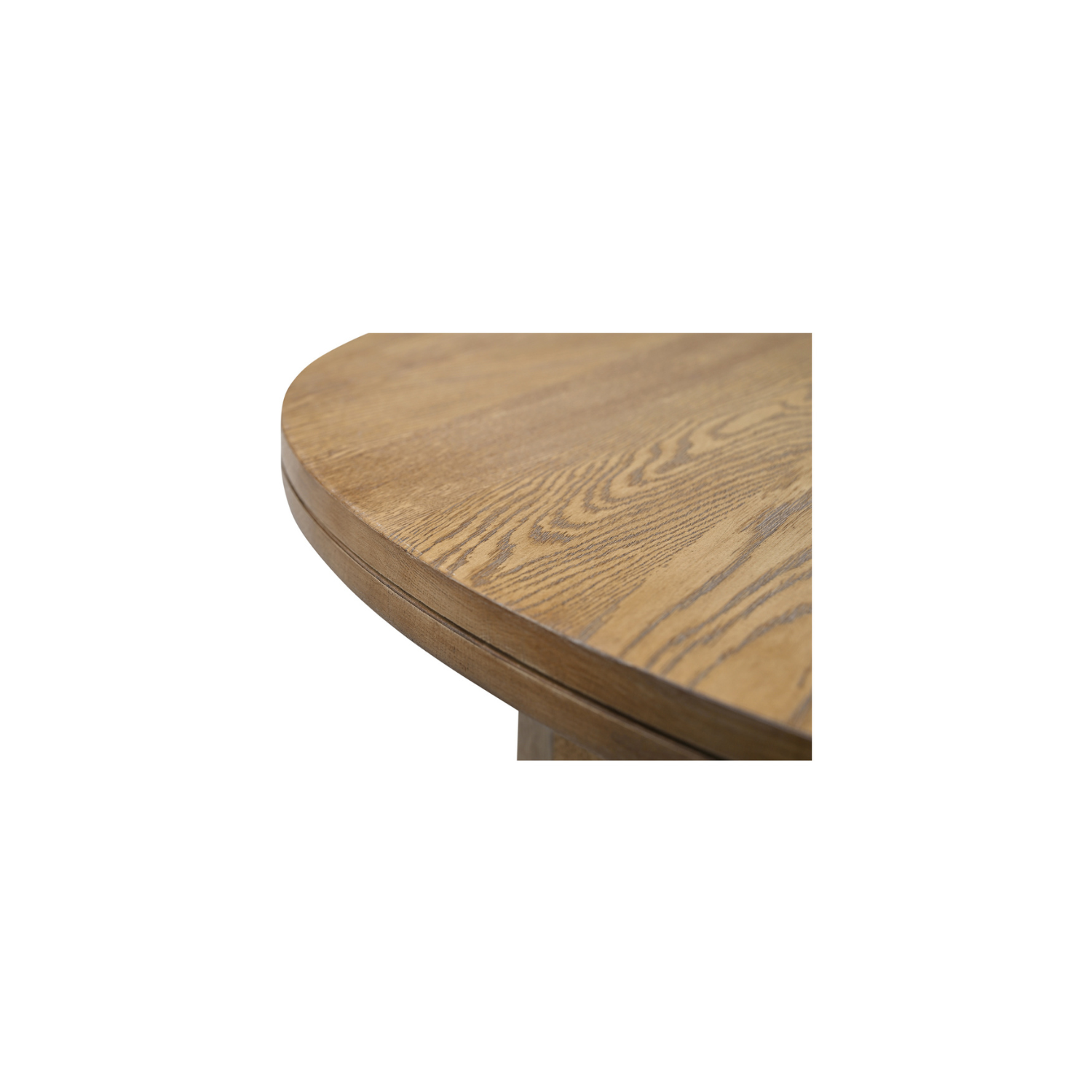 Crafted from solid oak, the Joel dining table's 40mm thick round top features a thoughtfully crafted V-groove, adding a visual lightness to the substantial surface.