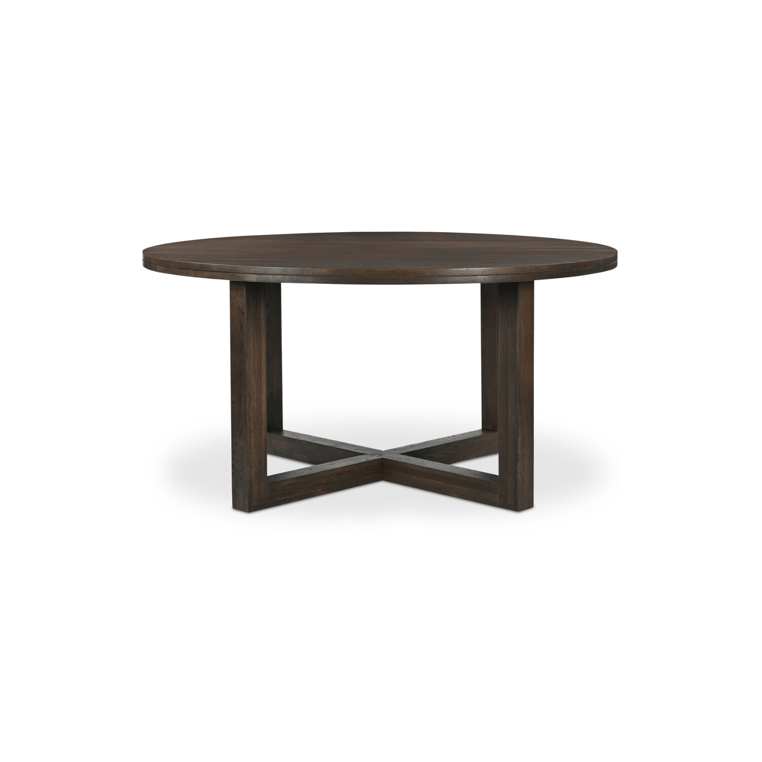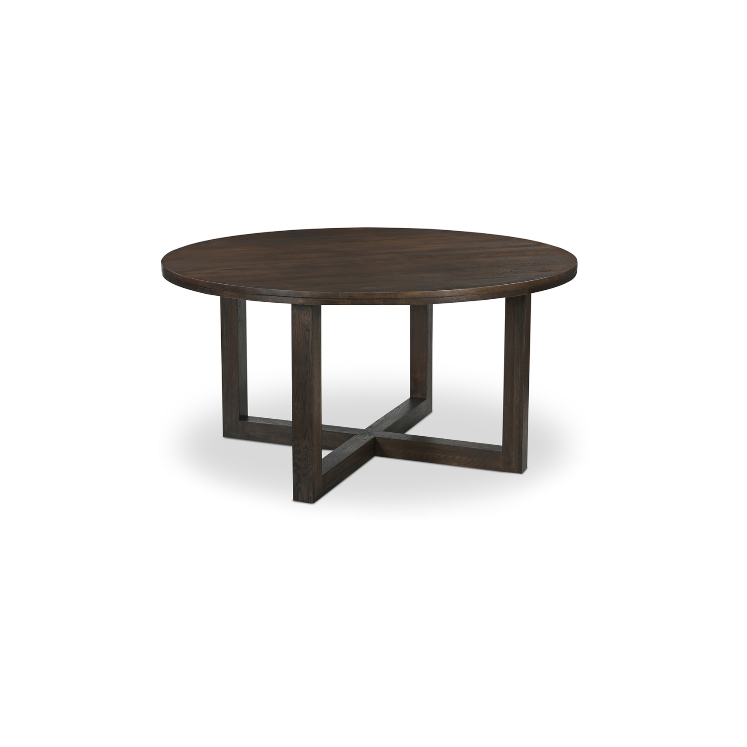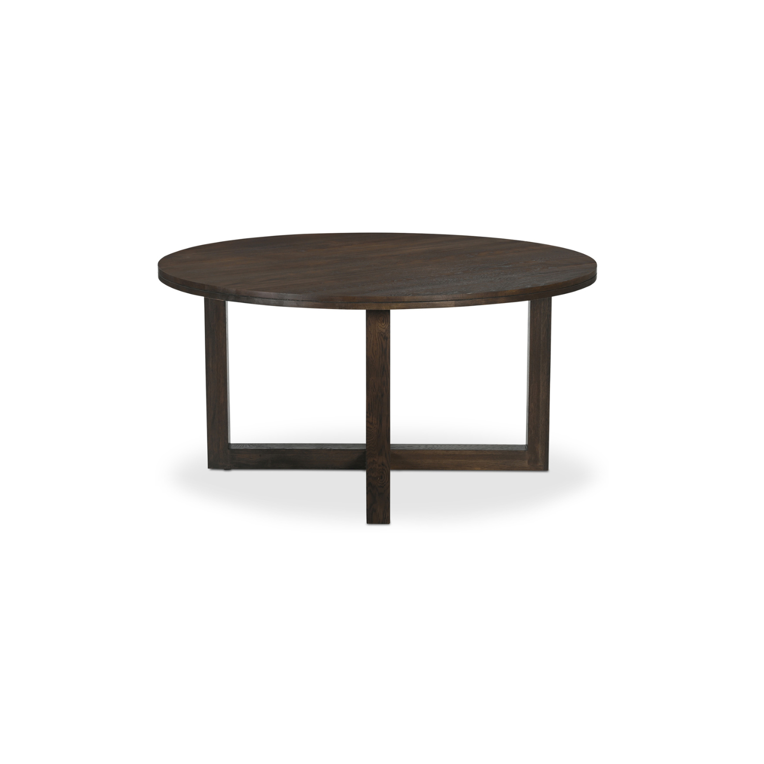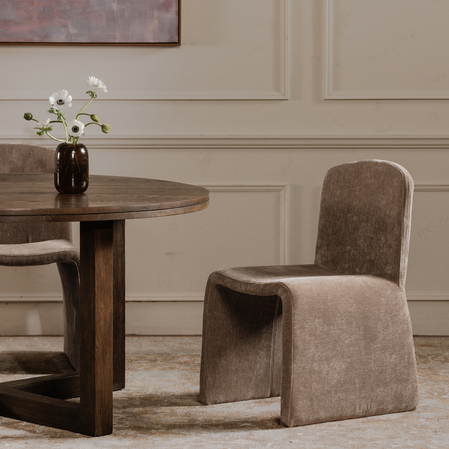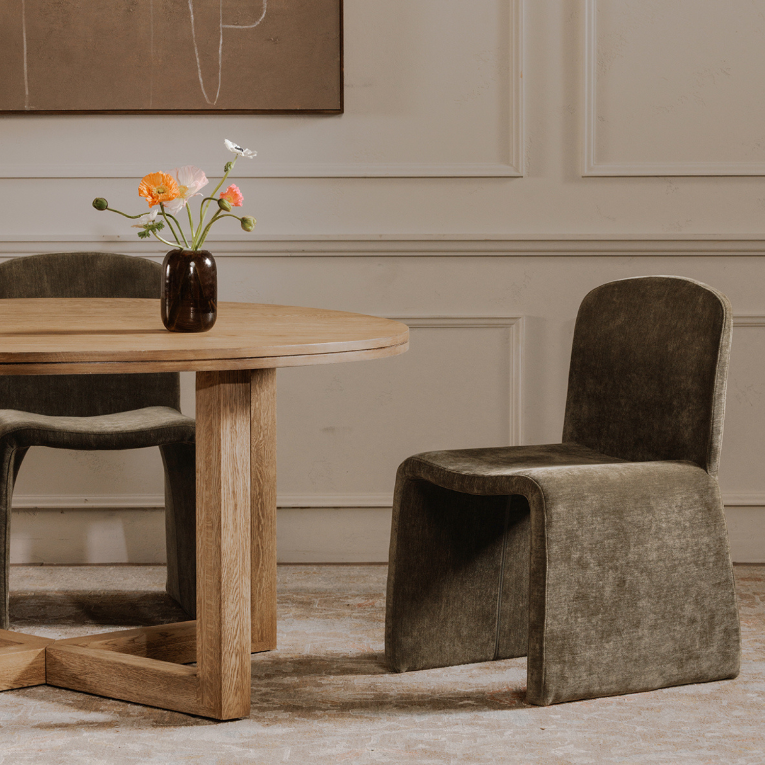 Crafted from solid oak, the Joel dining table's 40mm thick round top features a thoughtfully crafted V-groove, adding a visual lightness to the substantial surface.