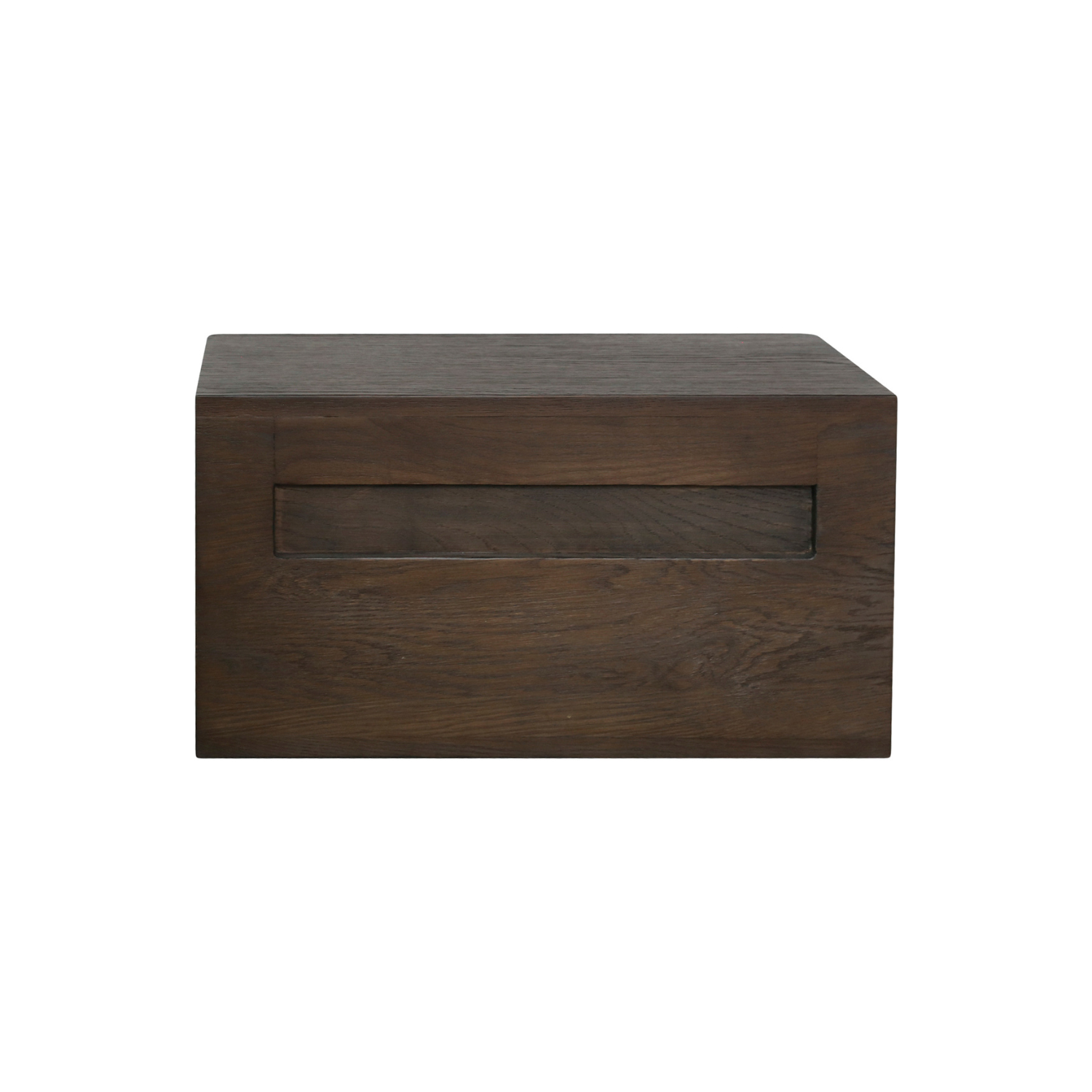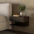 Wall-mounted with a French cleat that creates a sleek, floating effect and featuring a drawer and an open shelf, ample storage allows this piece to serve as a nightstand or an entryway table.