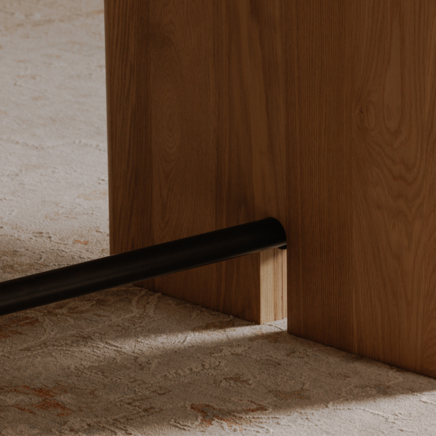 - Bullnose edge on two long sides of tabletop with straight edges on two short sides for both a soft & modern aesthetic