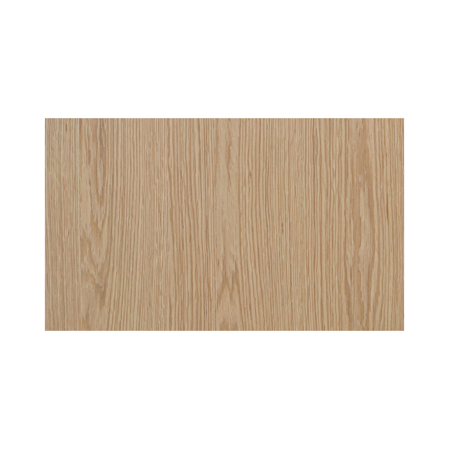 - Solid oak tabletop & base edge with oak veneer over plywood tabletop & leg. Metal spreader bar
