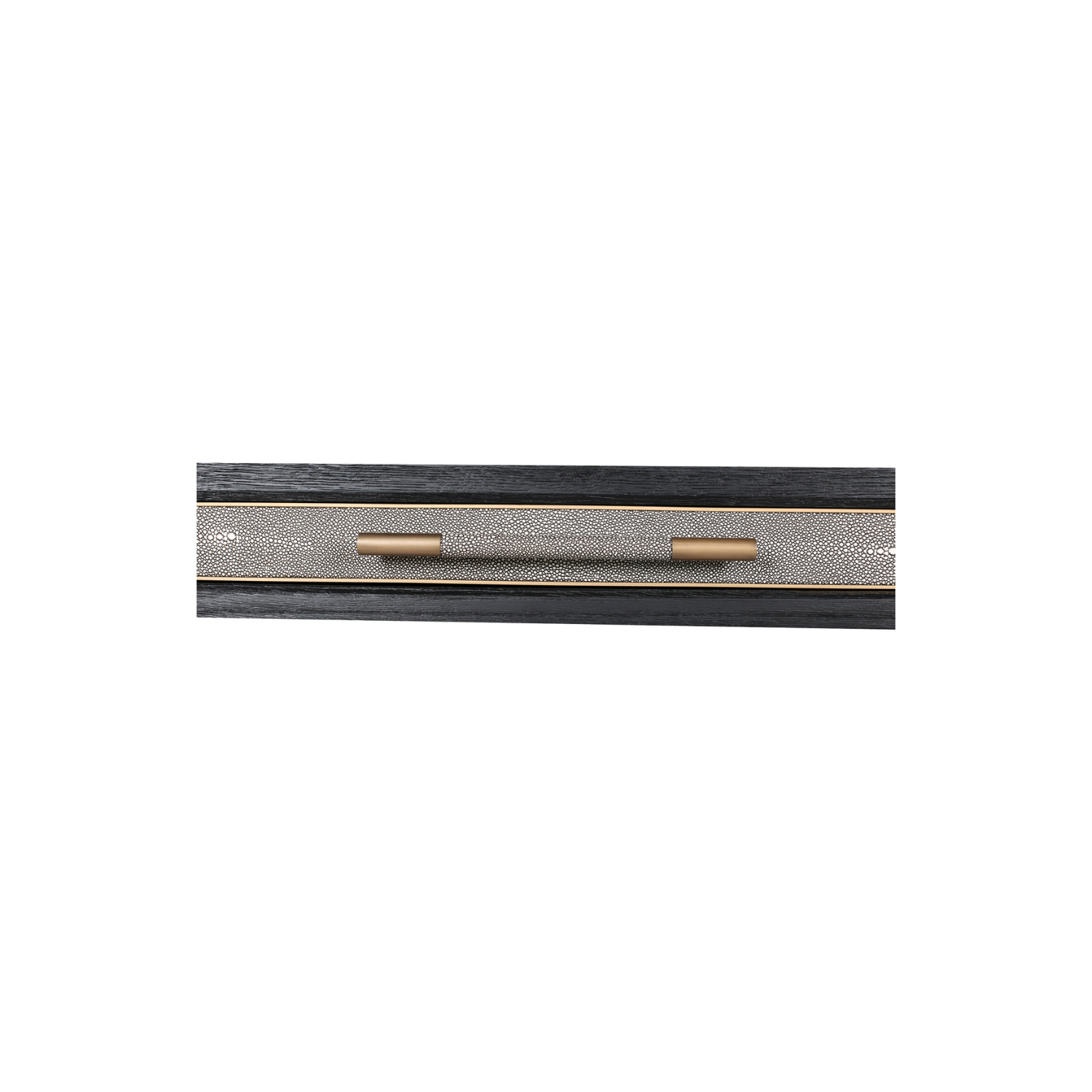 - A solid black oak frame & brass accents, with vegan shagreen leather