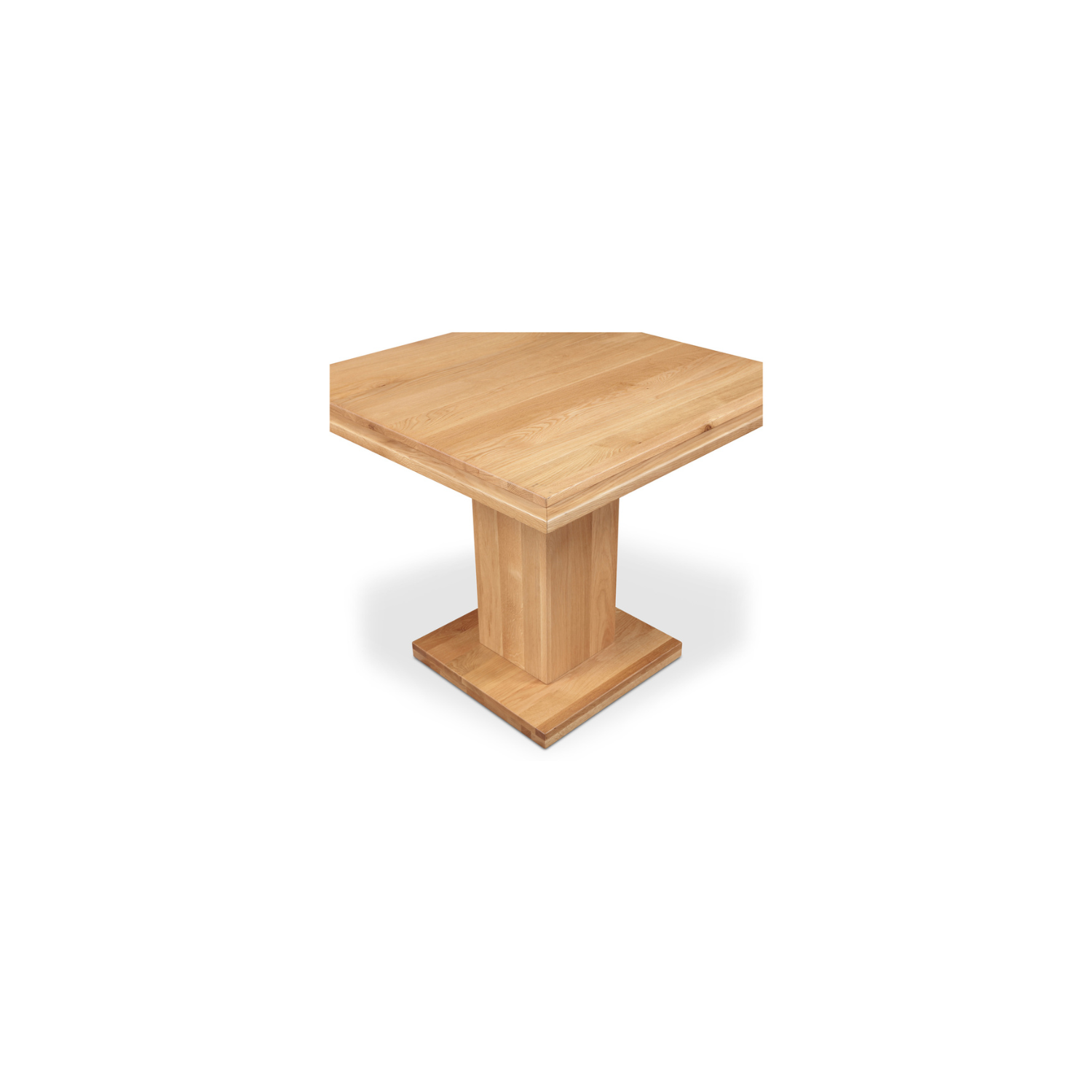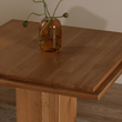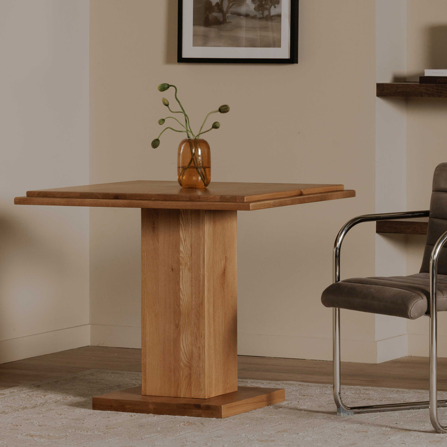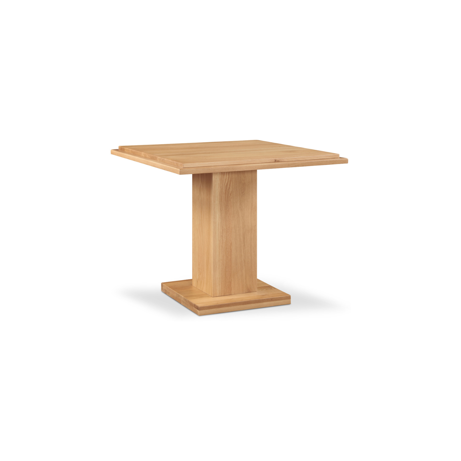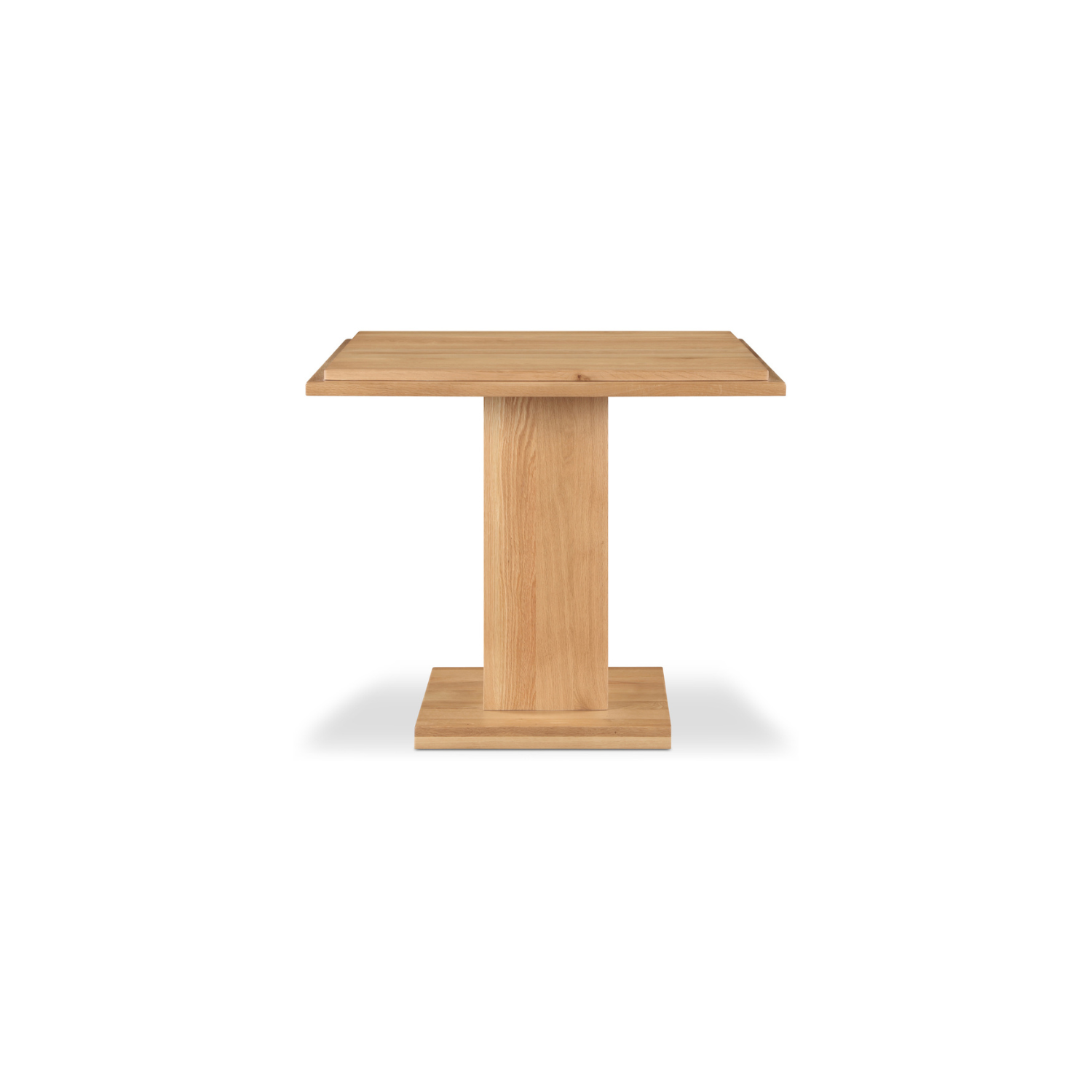 The May cafe table's unique double square top and rectangular post leg create an intriguing visual harmony.
