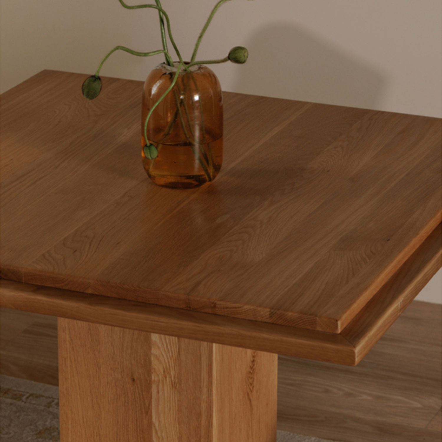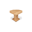 Crafted from solid oak, the table exudes warmth and natural beauty. Subtle curves and angled edges offer ergonomic comfort, inviting lingering moments, effortlessly transitioning from cafe table to entryway accent.