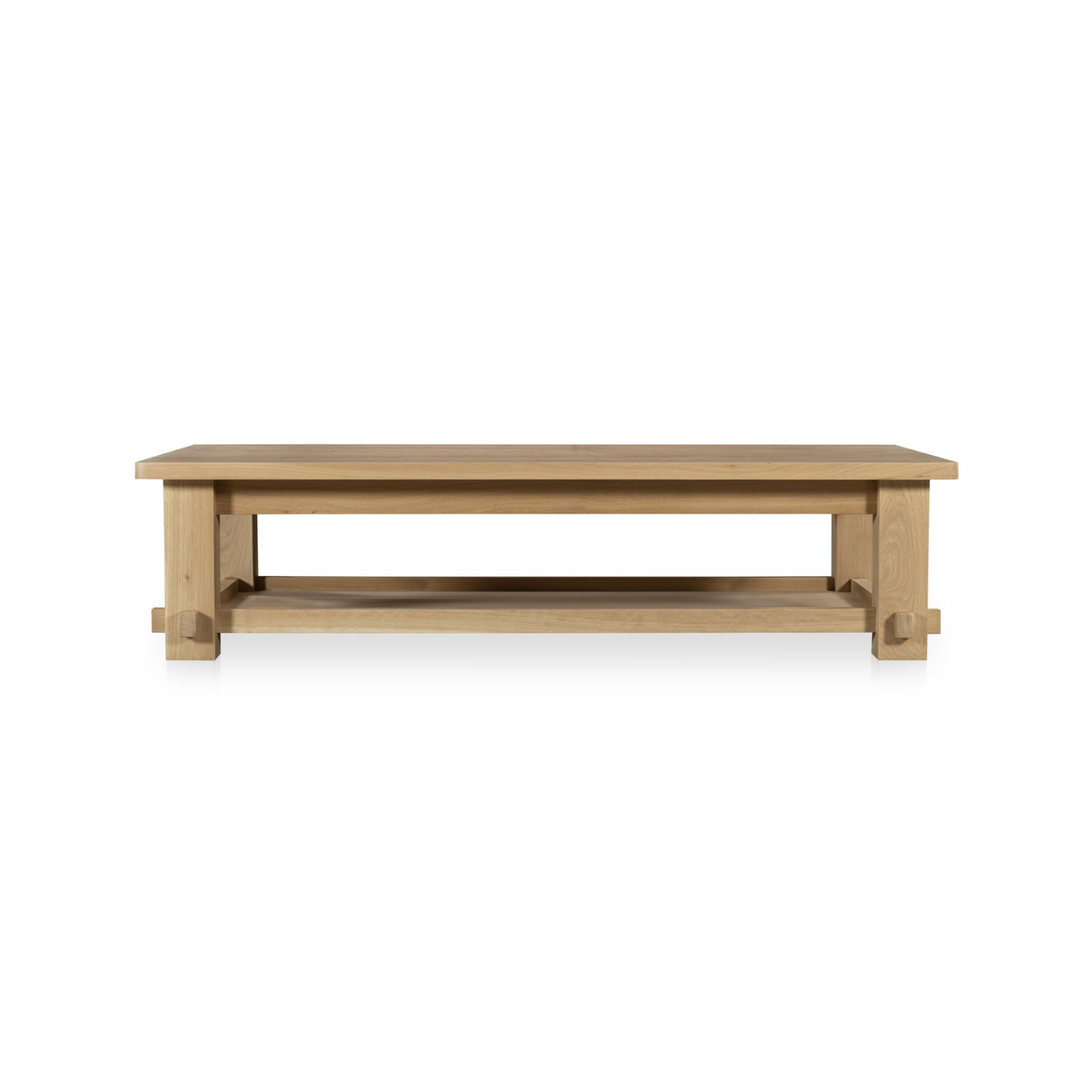 Rounded corners and exposed joinery at each leg show off the build, while a subtle tray shelf adds function without the fuss. Finished in natural oak, it’s soft, well-built, and quietly statement-making.