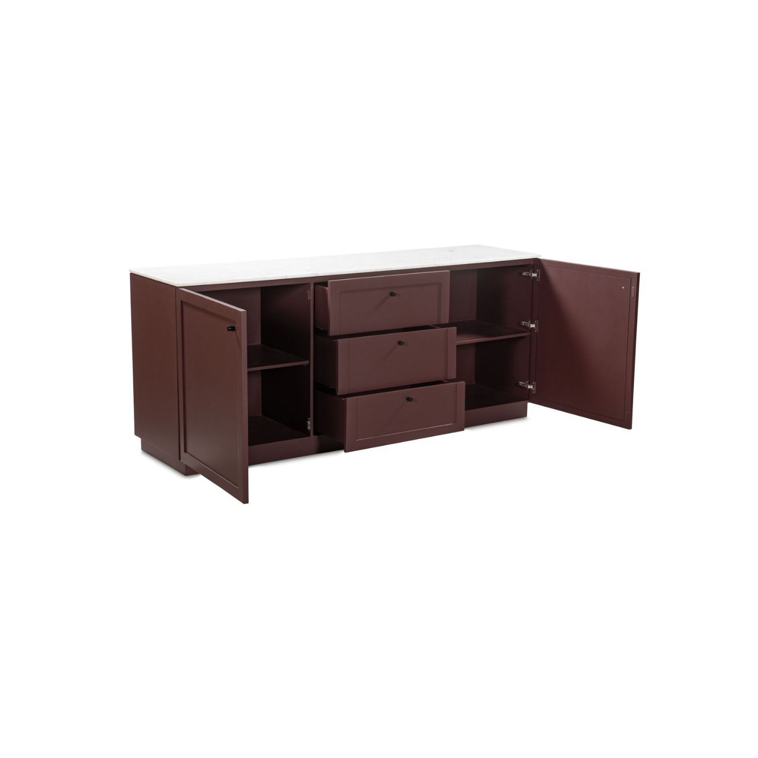 A creamy Banswara marble top adds instant polish, paired with a color-blocked frame that brings structure and contrast. Two doors and three drawers keep the layout practical, with crisp lines and rich texture from every angle. Functional where it counts. Refined where it shows.