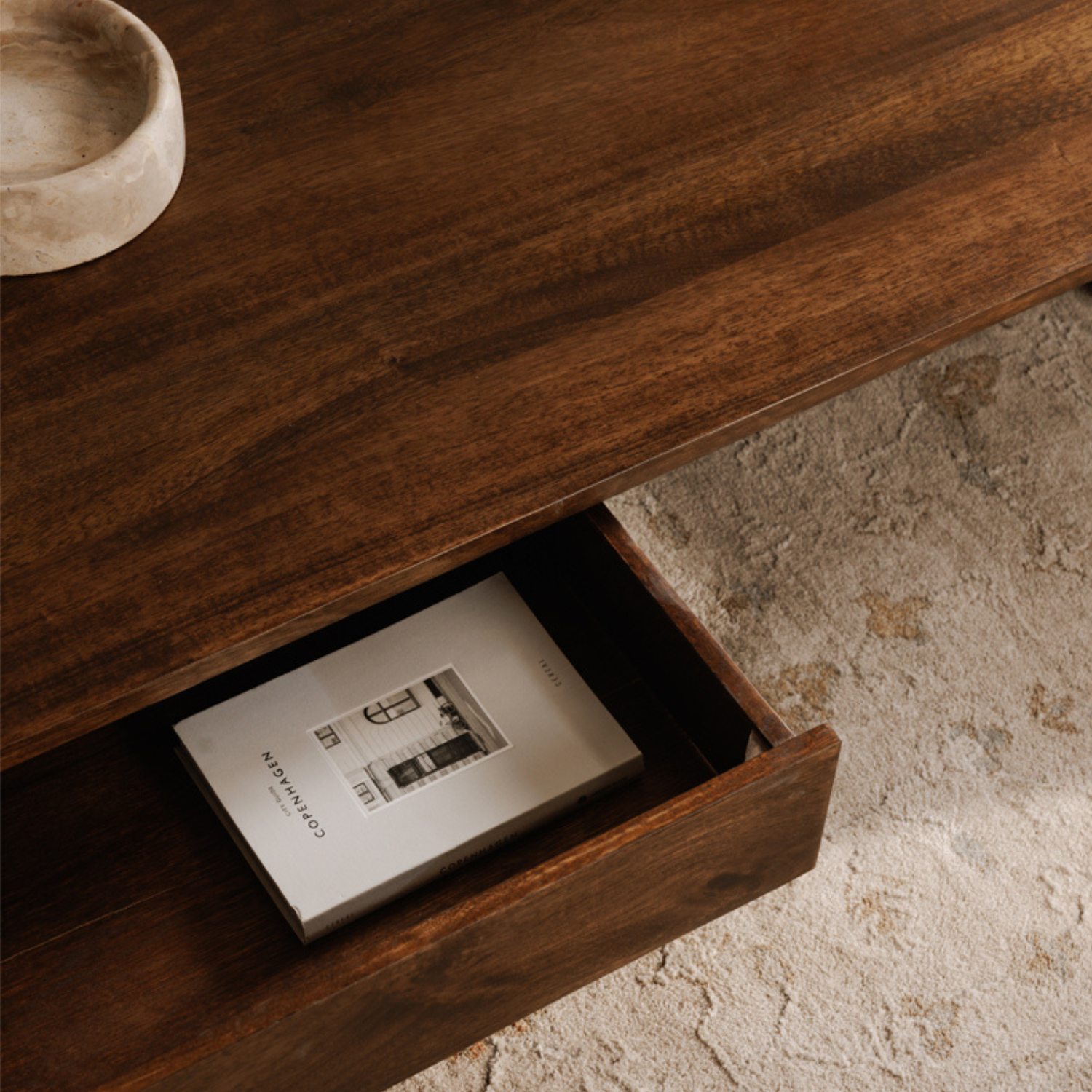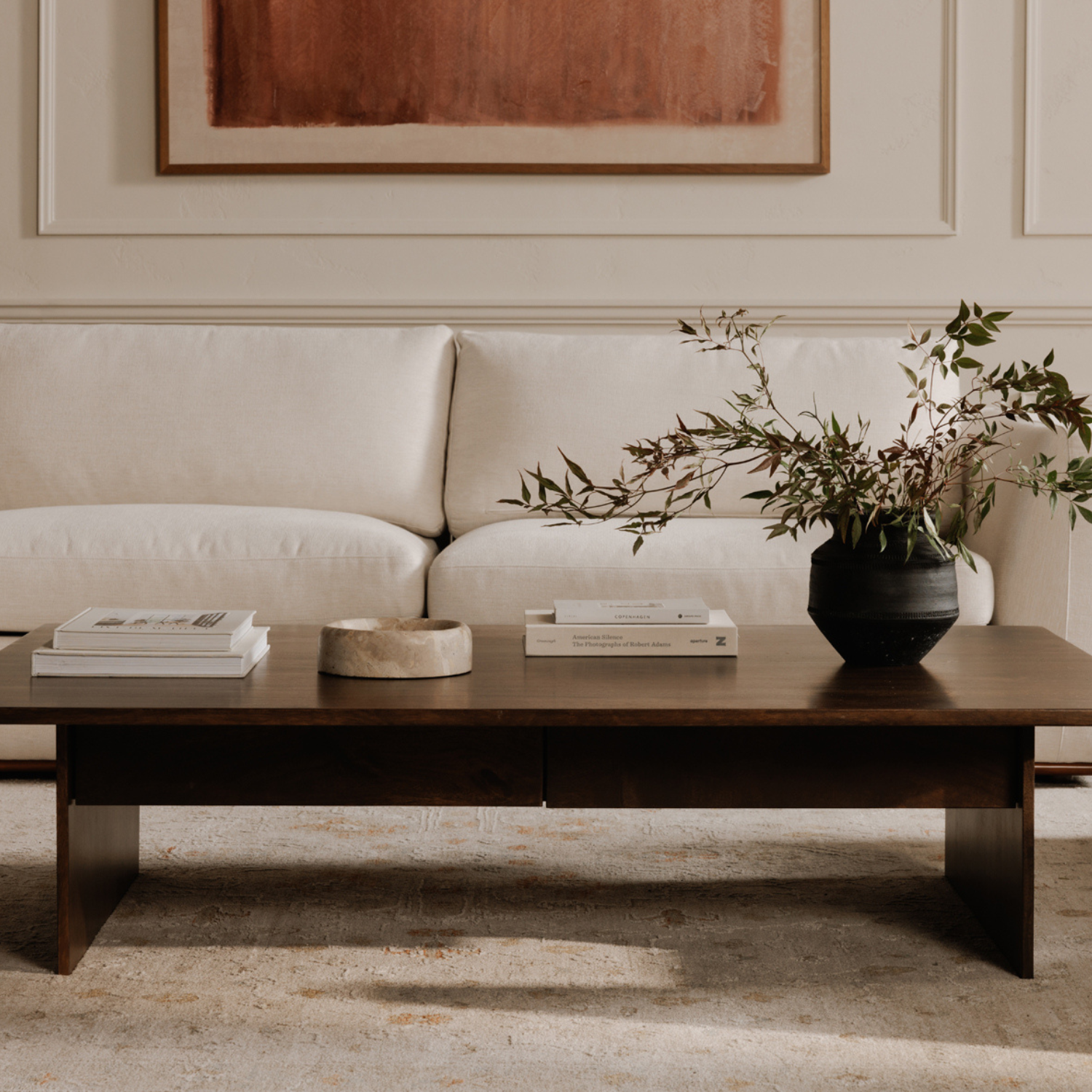 Crafted from solid mango wood, the Everett coffee table features a rich brown finish and modern linear form. With its clean lines and versatile design, this angular piece effortlessly adds timeless sophistication and practicality.