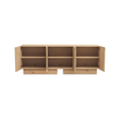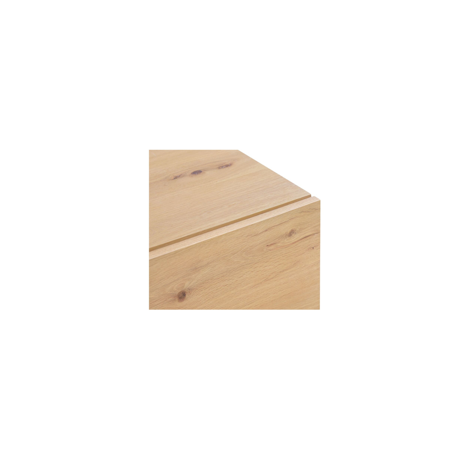 Its clean, minimal silhouette is grounded by a bold, blocky base that add a sculptural edge. The thick oak construction shows off a rustic grain that brings warmth and texture in all the right ways. Solid build, serious storage.