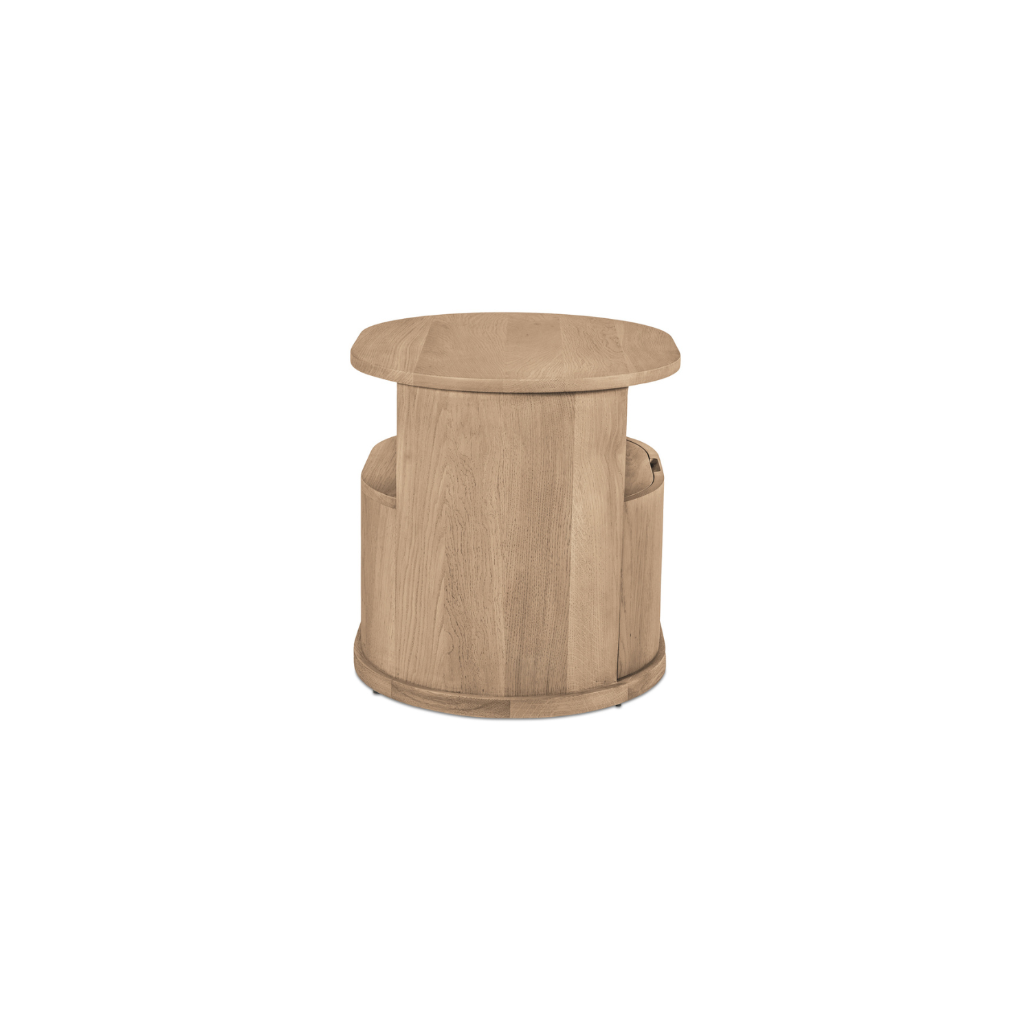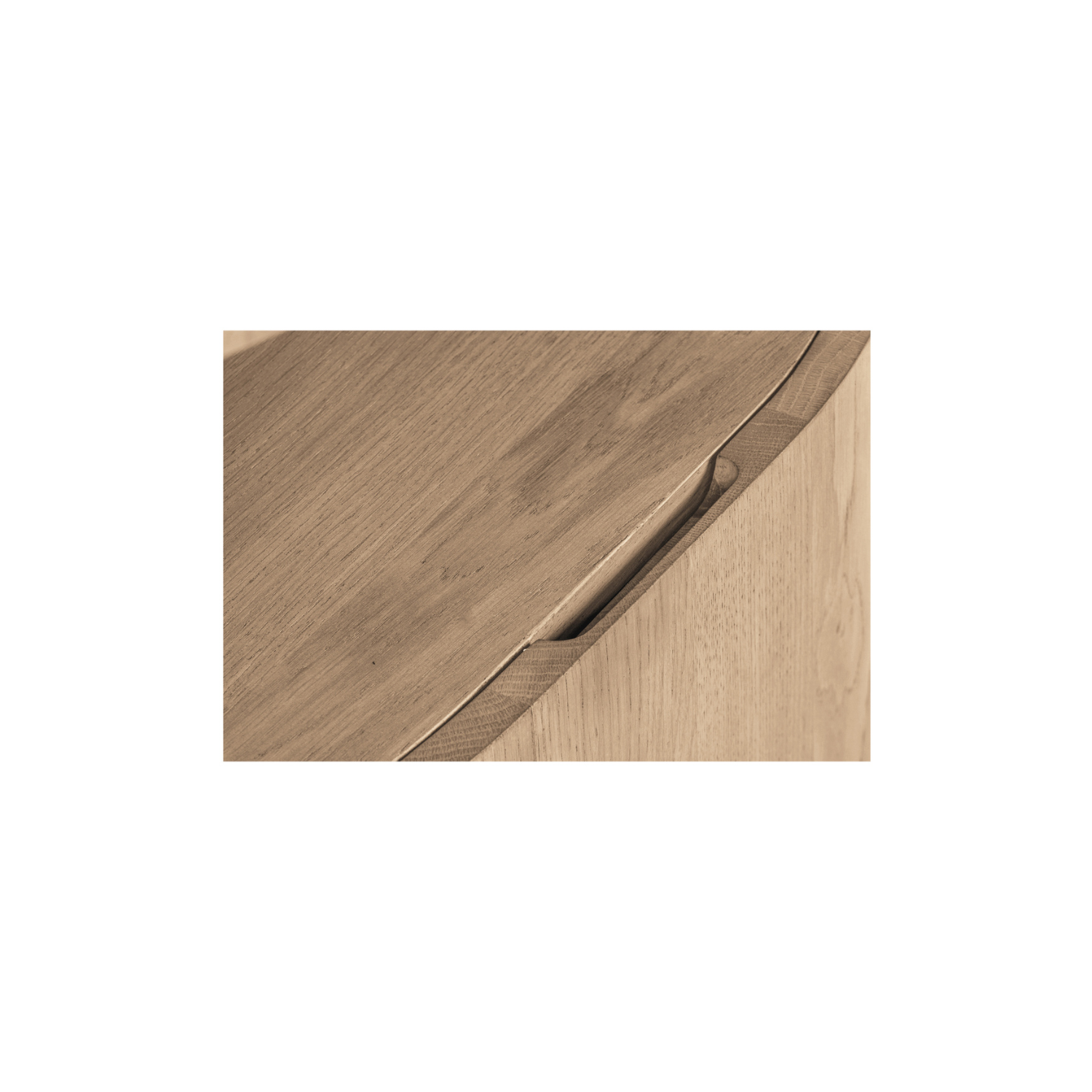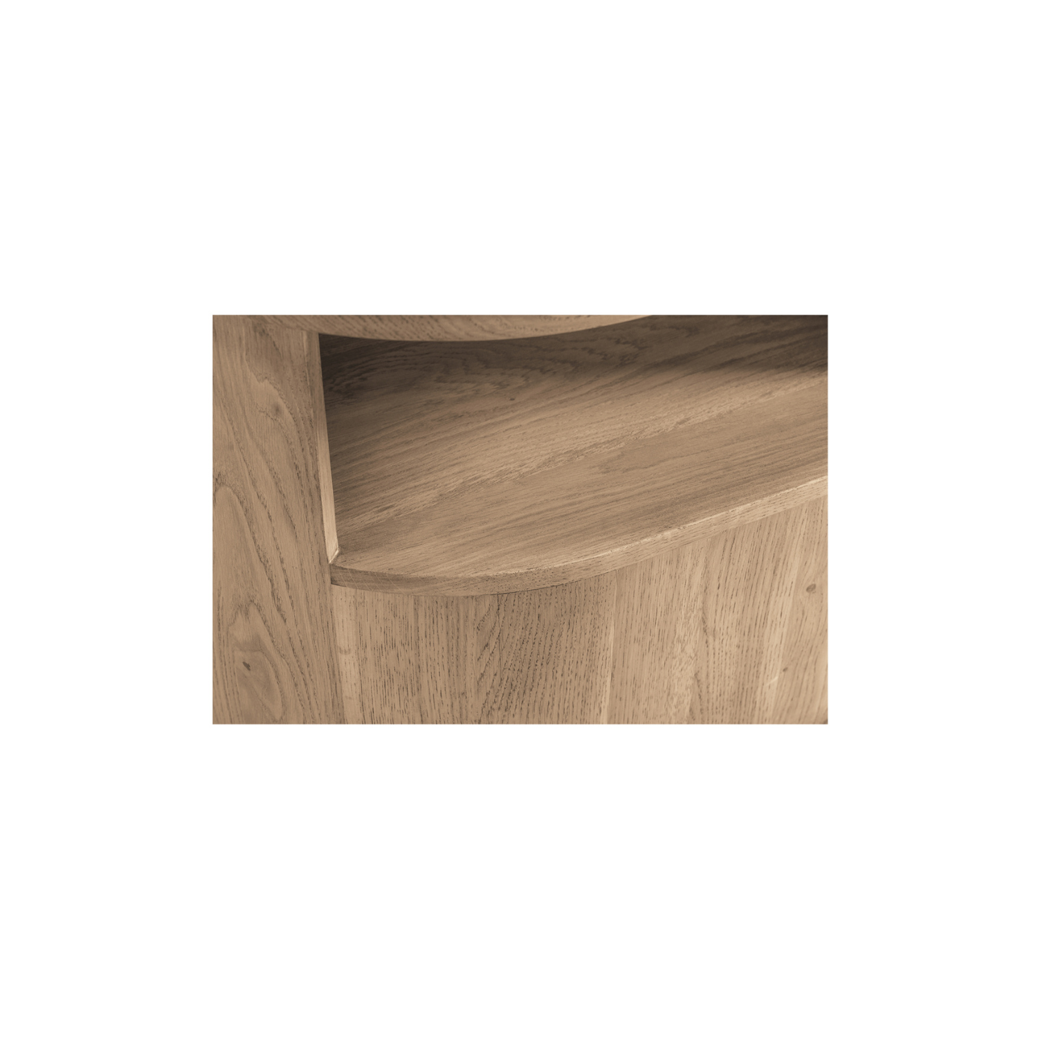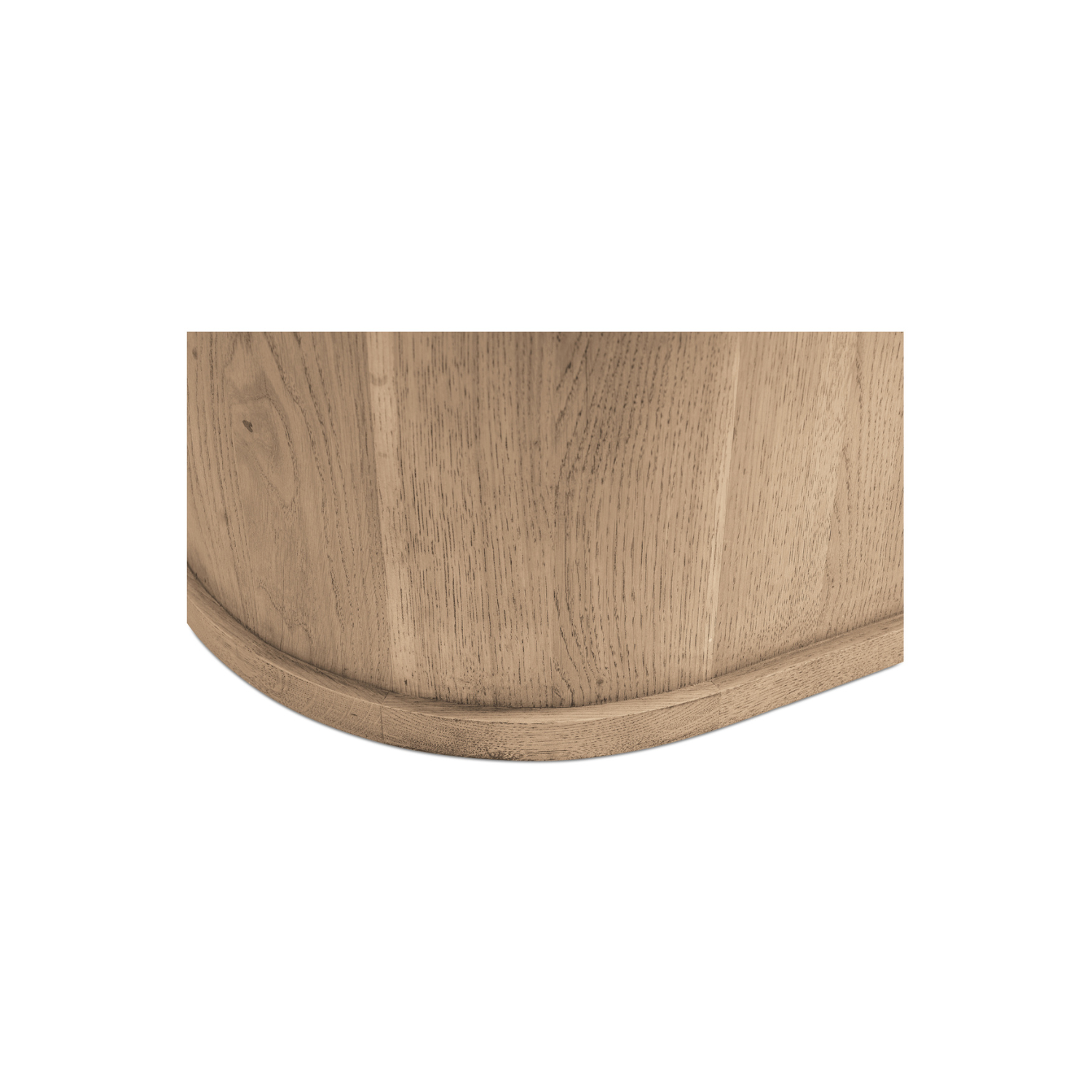 The Tommy nightstand embraces modern simplicity in a natural finish. Its distinctive racetrack capsule shape adds a contemporary touch to the bedroom, seamlessly blending form and function.