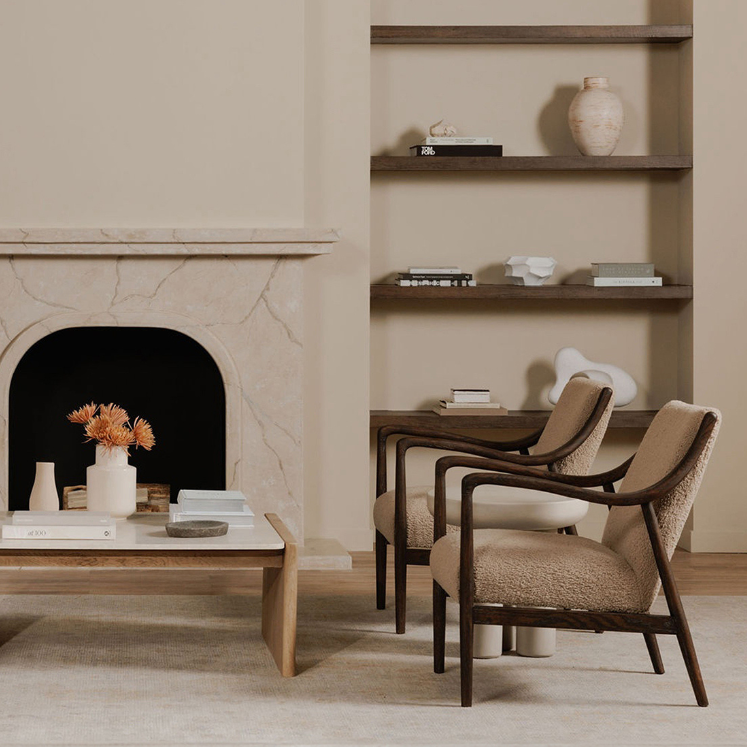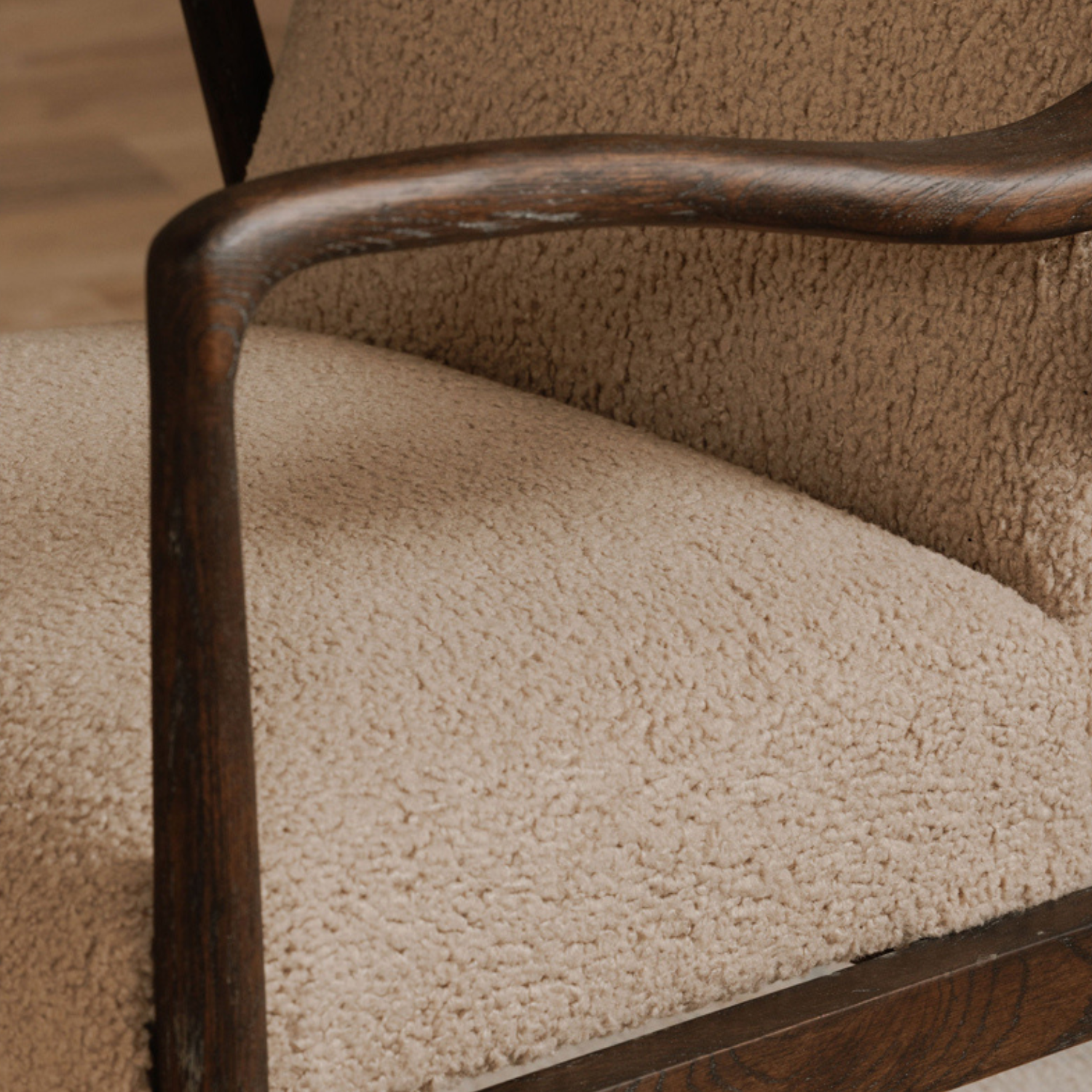 The Yates accent chair's solid oak frame and sumptuous faux shearling merge the coziness of plush upholstery with the timeless beauty of classic craftsmanship.